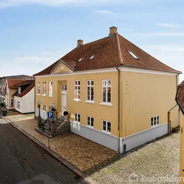Fra 1847 og frem til 1921 fungerede denne prægtige ejendom som rådhus i Bogense. Arkitekturen er gennemført ude såvel som inde, og gennem de seneste år er den gennem en nærmest altomfattende restaurering bragt op til fordums standard. Bygningen er fredet, og dens helt særlige kombination af privatbolig, selvstændig lejlighed og erhverv giver et bredt potentiale for anvendelse. Den fantastiske beliggenhed midt i den gamle og mest charmerende del af Bogense fuldender i grundrids den særegne ejendo