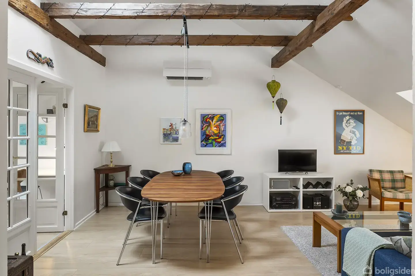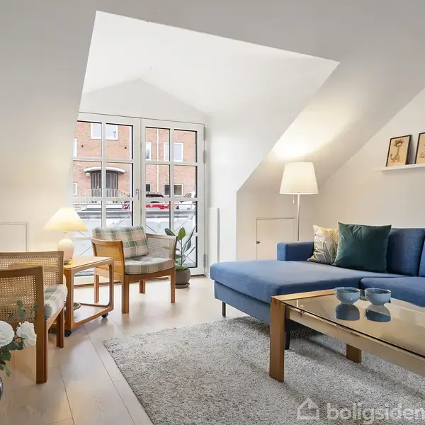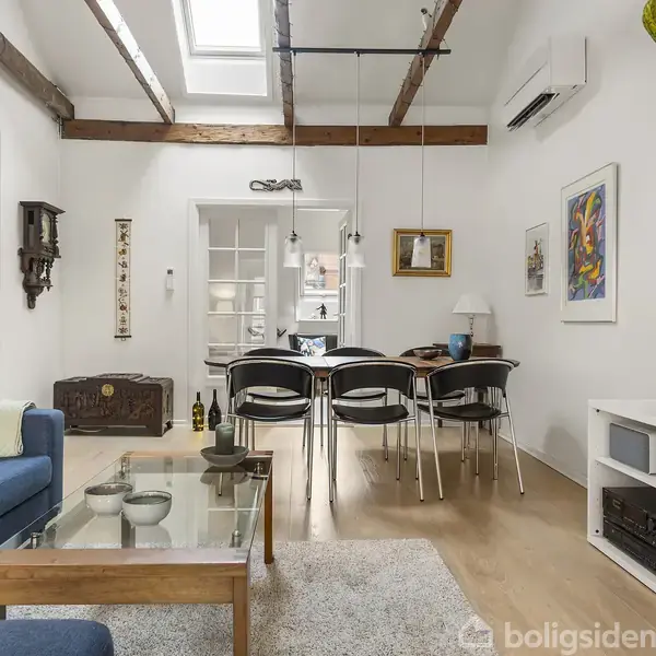 Midt i Viborg finder du denne stemningsfulde og rummelige lejlighed på 102 m², som kombinerer klassisk charme med en central og eftertragtet beliggenhed. Lejligheden ligger på Sct. Jørgens Vej og henvender sig til både par, singler og den pladskrævende køber, som ønsker at bo midt i byen – men stadig med ro og privatliv. Allerede ved ankomsten fornemmer man boligens særlige karakter, der især kommer til udtryk ved loft til kip og de smukke, synlige træbjælker. Disse detaljer skaber en helt særl