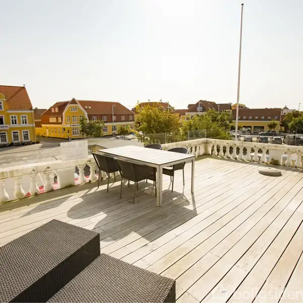 Velkommen til denne unikke penthouselejlighed, der ligger i den historiske, Plesner-tegnede banegårdsbygning midt i charmerende Skagen. Med sin placering kun få meter fra byens hovedgade, er du omgivet af byens pulserende liv med hyggelige caféer, spændende butikker og gallerier. Her er du også tæt på kulturelle perler som Skagens Museum, Bamsemuseet og den ikoniske havn med sine røde fiskepakhuse, hvor atmosfæren emmer af autentisk Skagen stemning. Bygningen fra 1920 blev nænsomt renoveret i 2007, og denne lejlighed fremstår i dag moderne og indbydende med en perfekt balance mellem klassisk charme og skandinavisk elegance. De originale bjælker skaber et varmt og hyggeligt miljø i stuen, og den oprindelige trappeopgang med de smukt bevarede døre og gelænder tilfører ekstra sjæl til boligen. Til lejligheden medfølger en privat parkeringsplads. Lejlighedens 162 m² er fordelt over to plan. Stueplan byder på et stilfuldt badeværelse med hjørnespa, bruseniche, vaskesøjle og diskrete loftspots. Det pæne køkken, dekoreret med stuk i loftet, er åbent mod den lyse spiseplads, hvorfra der er adgang til en stor, eksklusiv tagterrasse i hårdttræ. Her kan du nyde en fantastisk udsigt og stemningsfyldte aftener i det fri. To lyse værelser med stuk og indbyggede skabe. På anden sal finder du en rummelig stue med smukke synlige bjælker, trægulv og karakteristiske rundbuede vinduer, der indrammer en spektakulær udsigt over Skagen. Her kan du beundre ikoniske vartegn som vandtårnet, kirketårnet, Det Grå Fyr og den smukke horisont. Lejligheden byder også på udsigt til kulturhuset Kappelborg, Skagen Hotel og Nordjyske Bank. Denne penthouselejlighed kombinerer luksuriøse faciliteter og klassisk skagencharme i en harmonisk helhed. Her får du både byliv og kultur lige uden for døren – og en bolig, der indbyder til afslapning og livsnydelse.