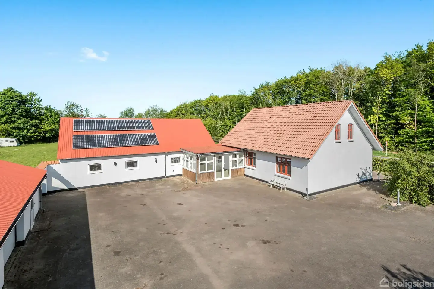 Åbent hus med tilmeldingskrav 2/2 - klik på billede - Velkommen til Sdr. Ommevej 60 – en charmerende og velholdt ejendom beliggende i landlige omgivelser i Blåhøj, mellem Brande og Sdr. Omme. Her får du en rummelig bolig med et boligareal på 146 m² i stueplan og en uudnyttet førstesal, som er registreret til bolig og dermed giver spændende muligheder. Huset er indrettet med en entré, et lyst og indbydende badeværelse med både bruseniche og badekar, samt et soveværelse. Køkkenet fremstår i hvidt inventar og ligger i åben forbindelse med en stor og lys stue, hvor der både er god plads til spise- og opholdsmiljø. Der er desuden mulighed for at etablere et ekstra værelse i stuen, hvis der er behov for flere rum. Det er også her, man finder trappen til førstesalen, som venter på at blive taget i brug. Til ejendommen hører flere gode udbygninger – herunder en garage og to store udhuse på henholdsvis 84 m² og 240 m² – som giver masser af plads til opbevaring, hobbyprojekter eller liberalt erhverv. Ejendommen er opført i 1918 og opvarmes med fjernvarme, og grunden giver rig mulighed for havebrug og udendørsaktiviteter i fredelige rammer. Der er toilet i udhuset. Beliggenheden i Blåhøj er ideel for dem, der ønsker at bo i naturskønne og rolige omgivelser, men stadig med kort afstand til nødvendige faciliteter. Der er ca. 300 meter til Blåhøj Skole, og både Sdr. Omme og Brande ligger inden for 10-12 minutters kørsel, hvor der findes gode indkøbsmuligheder og øvrige tilbud. Samtidig er der let adgang til motorvejsnettet, og gode busforbindelser til nærliggende byer som Herning, Ikast, Billund og Grindsted. Her er tale om en ejendom med mange anvendelsesmuligheder og god plads både inde og ude – perfekt til familien med behov for albuerum eller den selvstændige håndværker eller hobbyentusiast.