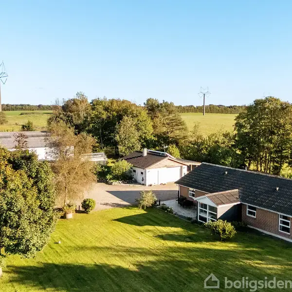 Midt i det bølgende landskab mellem Hobro og Støvring, åbner denne landejendom op for en tilværelse med nærvær, natur og muligheder i lange baner. Med over fem hektar jord, egen sø og en velholdt maskinhal, er der masser at gå på opdagelse i – både for den, der drømmer om dyrehold, jagt eller blot drømmer om ro og grønne vidder omkring sig. Stuehuset er opført i 1995 og ligger i et plan med en planløsning, der breder sig naturligt ud og omfavner hverdagens behov. Køkken-alrummet er indrettet med