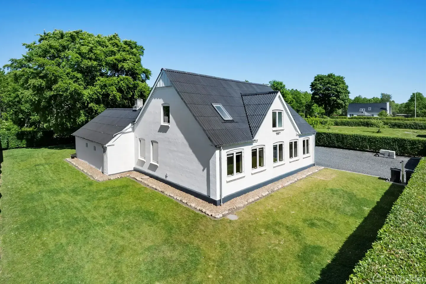 Åbent hus med tilmeldingskrav 19/2 - klik på billede - Stilsikker villa med garage/værksted! Boligen på Sdr. Rind Vej 77 er oprindelig opført i 1916, men er efterfølgende ombygget og moderniseret, så den i dag fremtræder nutidssvarende og indflytningsklar. Udover 152 m² velindrettet bolig, findes 48 m² garage/værksted. Der er adgang via stor og rummelig entré, hvor der ligeledes er god plads til opbevaring og vaskefaciliteter. Fra entréen er der adgang til henholdsvis det ene af boligens flotte badeværelser og det stilrene køkken. Køkkenet ligger i åben forbindelse til den ene af de to stuer, så man får fornemmelsen af et velfungerende køkkenalrum. Den anden stue er velegnet til sofa- og tv-hygge. Endeligt findes i stueplan kontor/ekstra værelse. Den velindrettet førstesal byder på stort soveværelse samt to ekstra værelser og boligens andet badeværelse. Der er adgang til samtlige rum fra fordelingsgang/repos. Overalt fremstår boligen lys og indbydende. Den gennemgående modernisering er foretaget med respekt for boligens alder, så den oprindelige atmosfære er velbevaret. Listen over nuværende ejers forbedringer er lang men følgende bør fremhæves: Omdannet tidligere entré til ekstra værelse, renoveret brusekabine i stueplan, nedlagt drænslange omkring hele huset, anlagt ny terrasse og udskiftet øvrig belægning, nyanlagt hele haven og indkørslen, netpudset soklen hele vejen rundt, understøbt garagegavl, vandskuret alle facader, ny vand stikledning og nye trapper foran hoveddør og garagedør. Derudover er alle fuger udskiftet på forsiden, gavlen i indkørslen, forside af garagen samt pudset garagegavl op efter understøbelse. Sidst er der indmuret armering i husmurene. Grunden er på 1037 m² og er mod vejen anlagt med god bred indkørsel, hvor der er rigelig plads til parkering af biler og andet. Tilhørende ejendommen er et mindre stykke fredet eng i ”Brandstrup Højmose”. Arealet, der andrager 5.950 m², har ikke været anvendt af nuværende ejer. Alt i alt en charmerende og stilsikker ejendom, der står indflytningsklar til de kommende ejere!