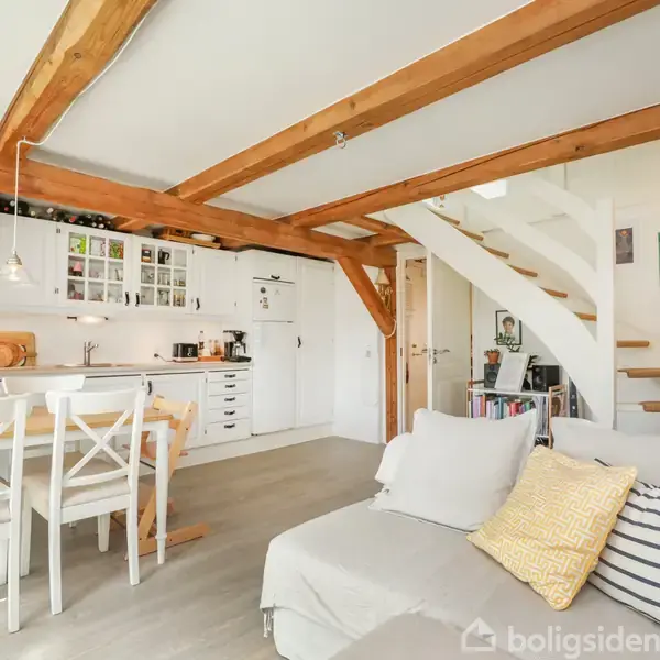 Pragtfuld lejlighed i to-plan med synlige bjælker i Slagelse centrum