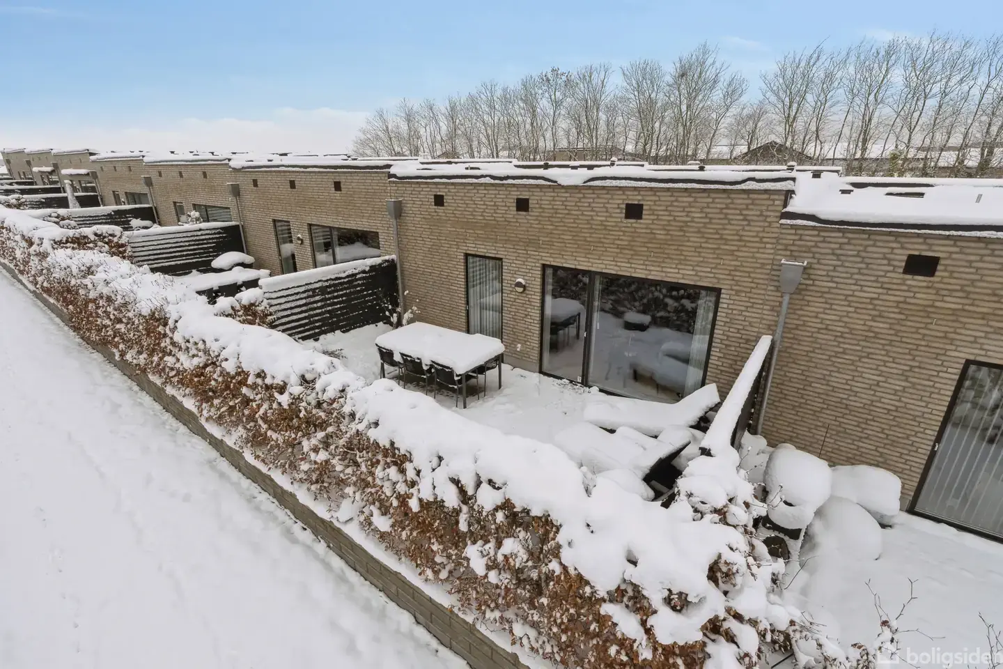 Der er en ro og lethed over dette moderne rækkehus fra 2018, hvor hverdagen er tænkt enkelt og funktionelt. Her er valgt materialer med fokus på minimal vedligeholdelse – både ude og inde – og boligen fremstår lys, indbydende og harmonisk i sit udtryk. Entréen byder velkommen med god plads til sko, overtøj og hverdagens praktiske behov. Herfra fordeler huset sig naturligt, så du hurtigt får overblik over planløsningen. Tæt ved entréen ligger to gode værelser, som egner sig perfekt til børn, kon