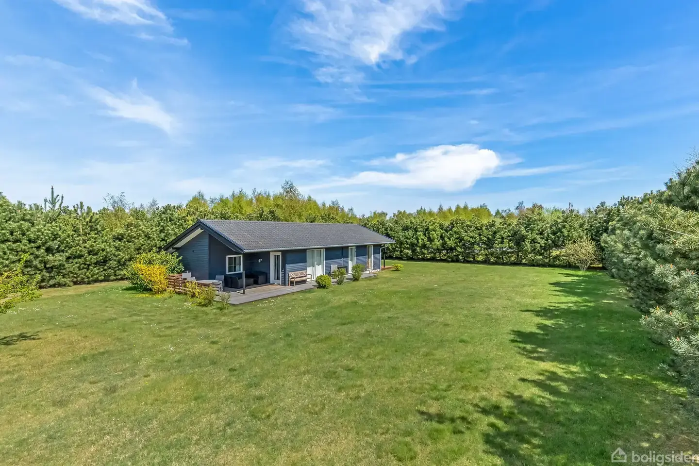 Velkommen til Siegelindevej 12 i Bøtø – et indbydende fritidshus på 99 m², der kombinerer moderne komfort med naturskøn beliggenhed nær Østersøens kridhvide sandstrande.Huset byder på en praktisk entre med adgang til gæstetoilet og et værelse – ideelt som kontor eller gæsteværelse. Den store, lyse stue er i åben forbindelse med køkkenet, der fremstår stilrent med mørke elementer og god skabsplads. Her er plads til både afslapning og samvær.Boligen rummer yderligere to værelser, hvoraf det ene ha