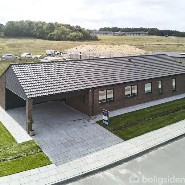 Åbent hus med tilmeldingskrav 3/2 - klik på billede - Dette forskudte vinkelhus på 167 kvm forener klassiske linjer med en gennemtænkt planløsning. Facaden er opført i en rødbrun mursten, som for alvor er vendt tilbage i byggeriet. Den klassiske sten får moderne medspil af det enkle sadeltag uden udhæng, sorte vinduesrammer og arkitekttagrender i aluminium. I hjertet af huset ligger det store køkken-alrum på over 40 kvm. Her strømmer dagslyset ind gennem to markante vinduespartier med skrå overpartier og direkte udgang til haven. Typisk er alrummet i denne populære hustype indrettet med køkkenø og spisebordsplads på langs, men her er køkkenet i stedet placeret let tilbagetrukket for at give plads til en stor og lys spisebordsplads i husets fremskudte vinkel. Et diskret depotrum med skjult indgang giver ekstra opbevaringsmuligheder, mens en indbygget alkove skaber en hyggelig krog til ro og fordybelse. Planløsningen er designet med øje for familielivets mange behov. Forældresoveværelset er rummeligt indrettet med skabe fra væg til væg. Frem for walk-in får man her tre værelser, som alle har en pæn størrelse og dermed mange anvendelsesmuligheder. Huset er opdelt i separate afdelinger med flere døre mellem sig, så alle er sikret ro og privatliv. Til de praktiske funktioner hører et bryggers med egen indgang samt et stort, integreret redskabsrum på hele 15 kvm – ideelt til værksted eller opbevaring af cykler og havegrej.
