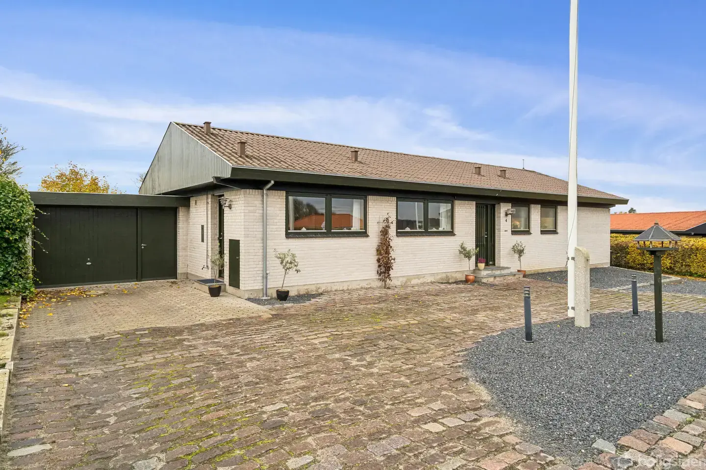 Arkitekttegnet villa i DyrekvarteretI Kristrup i Randers finder I denne nydelige og arkitekttegnede villa, der ikke alene toner frem med en attraktiv beliggenhed tæt på alle hverdagens gøremål, men også byder på en veldisponeret planløsning. I kan se frem til gode, regulære værelser og store, lyse opholdsrum, og ude råder I tilmed over en skøn have.Allerede udefra fremstår villaen med et pænt udtryk. Alt træværk er malet så sent som i 2025, og de hvide mursten står skarpt. Inden døre centrerer d