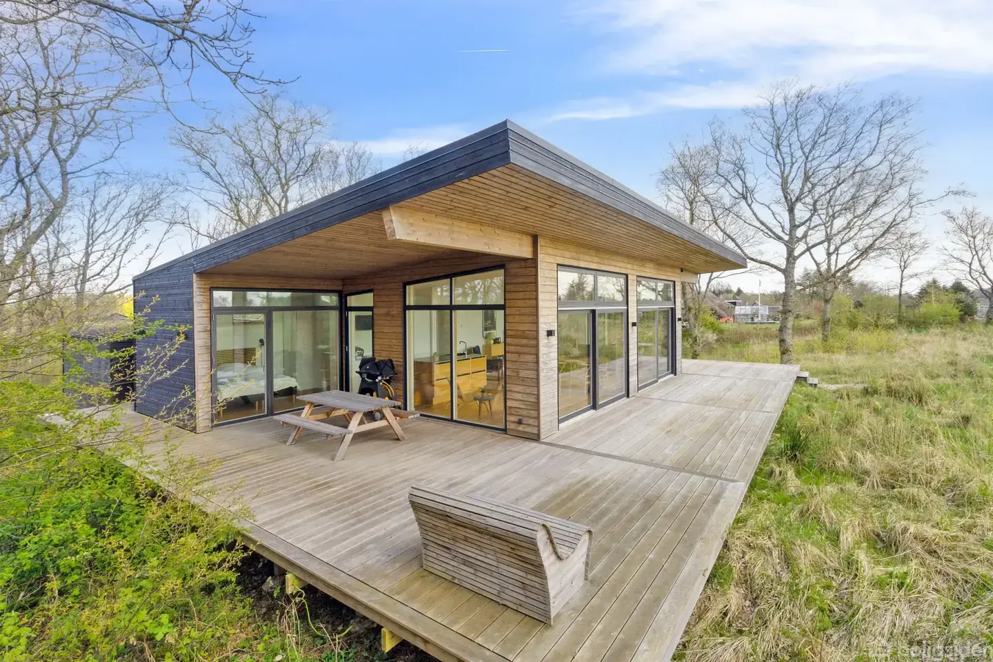 Åbent hus med tilmeldingskrav 4/2 - klik på billede - Har du brug for et skønt fritidshus? Af nyere dato, nemlig 2022? Et sted med fred og ro og naturen lige uden for? Kort afstand til fjorden? Så kan vi hjælpe dig her på Sitkagranvej 19. Boligen er på hele 93 m2 og er opført med fokus på, at udsigten skal nydes, og lyset strømme ind. Huset er virkelig lækkert, med gode, lyse, kvalitetsmaterialer - et sted, hvor man med det samme kan mærke, at pulsen kommer helt ned. Indretningen tilbyder 3 værelser og et rigtig fint badeværelse. Husets vigtigste rum er dog det store køkkenalrum. Her er simpelt hen bare skønt at være, lyset strømmer ind af de store vinduespartier, den store terrasse i flere niveau´er tilgås med udgang fra alle rum. Køkkenet er veludstyret og her vil det være oplagt med god madlavning, der kan nydes inde, når vejret er til det, men som bestemt også vil være oplagt at tage med ud på terrasserne, der er delvis overdækkede. Til opbevaring af grill, haveredskaber eller lignende er et 14 m2 udhus. Herligheden er beliggende på en 2.832 m2 stor grund, udlagt i vild natur med store egetræer, på en utrafikeret blindvej. Vi er kun ca. 500 m2 fra en dejlig badestrand i det populære område Hostrup. Her er stranden børnevenlig, her er skøn natur og området indbyder til gode gå- og cykelture. Du er tæt på lystbådehavnen, hvor den gode atmosfære, en hyggelig middag og en smuk solnedgang kan nydes. Du vil her også blive en del af en velfungerende og aktiv grundejerforening. Er du blevet inspireret til at blive ejer af dette skønne sommerhus, så ring allerede i dag
