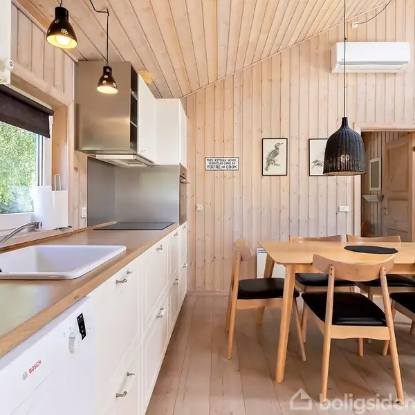 Dejligt sommerhus på lukket stikvej tæt på fjorden Kom med til Skaven Strands oprindelige sommerhusområde og se dette hyggelige sommerhus, hvor roen og beliggenheden tæt på fjorden kan nydes. Sommerhuset er velindrettet og giver optimale betingelser for hygge og fællesskab både for familier og venner. Indretning: Entré med garderobeplads, hvorfra der er adgang til ét af husets tre værelser. Hjerterummet er det flotte lyse køkkenalrum i åben forbindelse med boligens stue. Her her god plads og højt til loftet, og foran brændeovnen venter mange gode timer her. Yderligere to gode værelser, hvor der er rummelig hems med vinduer over det ene værelse. Badeværelset er holdt i lyse farver, og her kan man arrangere sit eget lille wellness-ophold med sauna og spabad. Fra stuen er der adgang til stor delvis overdækket terrasse, som flugter med husets bredde, så der er både plads til spiseområde og loungemøbler. Grunden er omkranset af høje træer, og sammen med den lukkede have er her masser af ro og privatliv. Skaven Strand byder på masser af spændende natur med gode cykel- og gangstier til Skjern Å området. Ringkøbing Fjord byder på vandaktiviteter og ved den lille havn kan det hyggelige havnemiljø nydes. Her er legepladser, minigolf m.m. på campingpladsen, så der er aktiviteter for enhver smag. Huset er tilmeldt udlejning og årlig indtægt til ejer i 2024 var ca. kr.68.000,- ******Hvad kan jeg tjene ved udlejning af sommerhuset?***** Hvis I ønsker at udleje sommerhuset eller få et indblik i hvad sommerhuset kan indbringe ved udlejning, så har EDC Skjern & Tarm et udlejningsbudget, som er udarbejdet af det lokale feriehusudlejningsbureau Feriepartner Bork Havn. Kontakt gerne Feriepartner Bork Havn direkte for en uforpligtende snak på tlf.: 75280344.