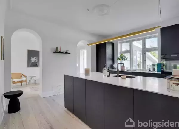De smukke røde sten, de murede gesimser og det flotte mansardtag giver de første små prej om den herskabelighed og gennemførte stil, der er i vente ved et besøg i denne fantastiske villa. Her har man med istandsættelsen de seneste år på smukkeste vis formået at bevare villaens mange originale detaljer og samtidig kombinere indretning og funktionalitet, så man i dag har en moderne og funktionel villa. De flotte gamle pitch pine plankegulve i særdeles høj kvalitet er blevet afslebet og matlakerede. Lofterne er med stuk og roset og den flotte murede kanap beriger på smukkeste vis både stue og 1. sal med en unik detalje. I alle rum der er en dejlig loftshøjde, som sammen med et fantastisk lysindfald skaber en dejlig lys og indbydende stemning overalt. Villaen er endvidere beliggende på en dejlig vestvendt grund med rig mulighed for at nyde sol eller leg i haven. Villaen er blevet hulmursisoleret i 2018 og størstedelen af vinduerne er skiftet i 2007. Opvarmes med fjernvarme. INDRETNING: Skøn entre med sortmalet trægulv og den flotte svungne trappe til 1. sal. Dejlig stue med afslebet trægulv, kanap og rigtig god plads til både opholdsstue og spisebord med plads til gæster. Fra stuen er der en smuk dobbelt dør ud til det flotte nye køkken. Køkkenet er fra Kubik med sorte fronter og hvid corianbordplade. Alle detaljer er gennemførte og for at skabe så meget lys og loft som muligt er emhætten indbygget i kogepladen. Der er brændeovn i stuen og som en fin detalje, så er væggen bag brændeovnen taget ned, så man også har glæde af brændeovnen i køkkenet. Fra køkkenet kommer med via to smukke søjlebuer ind i et multirum med mange anvendelsesmuligheder. Herfra er der udgang til en helt fantastisk havestue i forskudte plan og med udgang til terrasse og have. Badeværelse med kar og original indbygget vola armatur. Et dejlig, lyst værelse. 1. SAL: Et stort værelse med kanap og dobbeltdør ind til soveværelset. Et godt børneværelse. Et lyst badeværelse med de flotteste originale marmorklinker, gulvvarme og bruseniche. Derudover er der indrettet en funktionel arbejdsplads på repos. KÆLDER: To gode, disponible rum samt et godt vaskerum og et tørrerum. Til villaen hører endvidere en stor dobbelt carport med tilhørende redskabsrum. På bagsiden af carporten er der lavet en rigtig dejlig, overdækket terrasse, der indbyder til en velbrygget kop kaffe eller et glas koldt rosé i aftensolen.