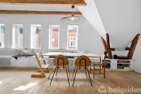 Åbent hus med tilmeldingskrav 10/2 - klik på billede - Midt i en flot og velpasset ejendom finder du denne indbydende ejerlejlighed, der både emmer af moderne komfort og velovervejet indretning. Boligen fremstår lys, stilren og klar til indflytning - perfekt for dig, der drømmer om et hjem med både sjæl og funktionalitet. Beliggenheden er i top: roligt og attraktivt kvarter tæt på det centrale Horsens, kun 10 mins gang til banegården. Herfra 30 min til Aarhus og 15 til Vejle. Ejendommen har gennemgået en række forbedringer og fremstår nydelig - både ude og inde. Heriblandt taget udskiftet, facaden omfuget, og der blev etableret separatkloakering. Der er fjernvarme, og i 2022 blev kælderen renoveret med bl.a. radiator og vandinstallationer, så der nu også er plads og faciliteter til vask. Kælderen byder desuden på fine opbevaringsmuligheder og cykelparkering. Udenfor venter hyggelige fællesarealer, som beboerne frit kan bruge til grill, solbadning og afslapning i sommermånederne. Indenfor mødes du af en veludnyttet planløsning med entré og fordelingsgang, hvor der både er indbygget skab og god plads til overtøjet. Køkkenet - lyst og praktisk - stammer fra omkring 2014 og matcher lejlighedens øvrige stil. Badeværelset, også fra ca. 2014, byder på en god bruseniche. Soveværelset er rummeligt og hyggeligt med originale plankegulve og rigelig skabsplads. Stuen - ligeledes med flotte plankegulve - har både en indbygget bænk med opbevaring og en elegant radiatorskjuler. Det loft til kip skaber en luftig og rummelig atmosfære, og herfra er der adgang til en stor hems med to adskilte afdelinger - perfekt til opbevaring, hjemmekontor eller en ekstra soveplads. Lejligheden er moderniseret med nænsom hånd, så ejendommens oprindelige charme er bevaret - samtidig med at funktionalitet og æstetik er i højsædet. Her får du en helstøbt bolig i dejlige omgivelser, perfekt egnet til forældrekøb, det unge par eller den enlige- lige til at flytte ind i.