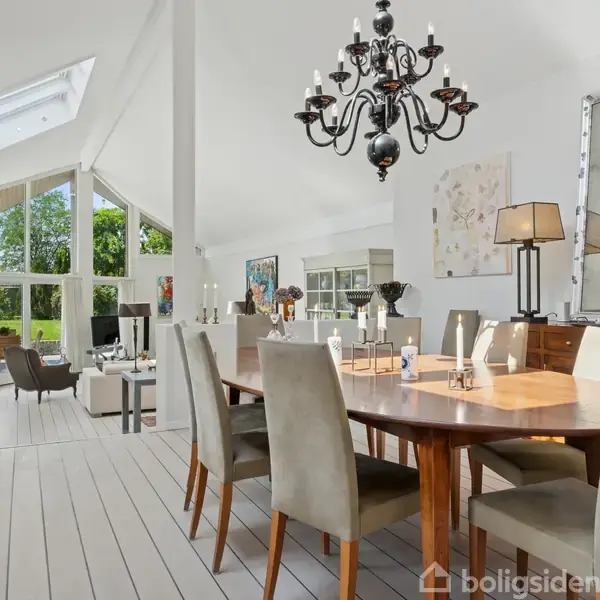 Kvalitetsvilla ved Sjælsø Arkitektonisk særpræg med skæve vinkler, forskudte plan og masser af lys kendetegner denne store villa, som befinder sig på en ugeneret og solrig koteletgrund lige syd for Sjælsø. Forestil jer tilværelsen her, hvor I kan gå til søen på et øjeblik og nyde naturen i dagligdagen, ligesom den totalrenoverede ejendom danner en udsøgt ramme om jeres tilværelse. I kan se frem til at indrette tre fantastiske opholdsrum en suite foruden tre værelser, to badeværelser og et brygg