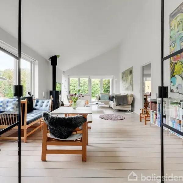 Eksklusiv og indflytningsklar familievilla med naturskøn beliggenhed på Sjælsøvej 57 Drømmer du om ro, rummelighed og en beliggenhed tæt på naturen? For enden af idylliske Sjælsøvej, med et smukt og fredeligt kig til Sjælsø, finder du denne velholdte og gennemrenoverede villa – et ideelt hjem til den moderne familie, som ikke går på kompromis med hverken stil eller funktionalitet. Hjemmets hjerte er de to store leverum – en lys og luftig opholdsstue med loft til kip, brændeovn og direkte udgang