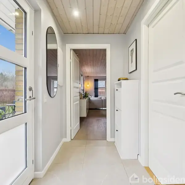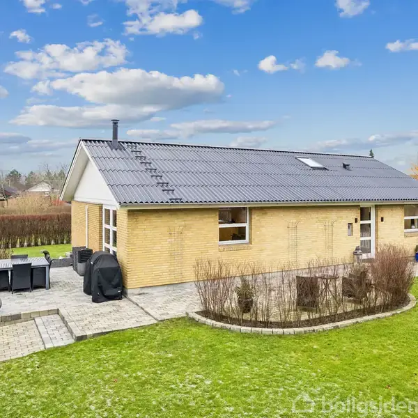 På en lukket villavej i Gelsted ligger en nydelig etplansvilla og venter på sin nye familie. For få år siden blev den opdateret på flere fronter, hvorfor der er gjort klar til, at nøglerne kan skifte hænder, og I kan flytte direkte ind. En pæn forhave, gule mursten, hvide vinduesrammer og et nyt tag fra 2024 møder jer, som I triller ind på adressen. Ja, der er unægteligt styr på det ydre – og det samme gælder indenfor. Bilen kan I parkere i garagen, før I med fordel tager et kig på baghaven. Den er grøn, nem at holde og med fliseterrasser i flere retninger, så I altid kan fange solen. Et udhus tager sig af haveredskaber, krukker og alt det praktiske. Indenfor venter 109 veludnyttede m2: Entréen fik nye fliser i 2024, og samme år blev der lagt nye gulve i hele huset, ligesom døre og karme blev udskiftet. Planløsningen fordeler tre regulære værelser, et brusebadeværelse – også fra 2024 – med gulvvarme samt et åbent opholdsrum, hvor køkken, spisestue og stue glider sammen. Her står en pilleovn, som har fulgt hjemmet de sidste fire år, suppleret af en luft-til-luft varmepumpe fra fem år siden. Bagtil grænser grunden op til et grønt område, og bare 500 meter væk begynder Stenskov med sine stier og udsigter over åbne marker. Svømmehal, idrætsfaciliteter og indkøb nås på cykel, mens skolebussen stopper 100 meter fra hoveddøren. For pendleren er der desuden kort køreafstand til Næstved og Ringsted – og motorvejen ligeså.