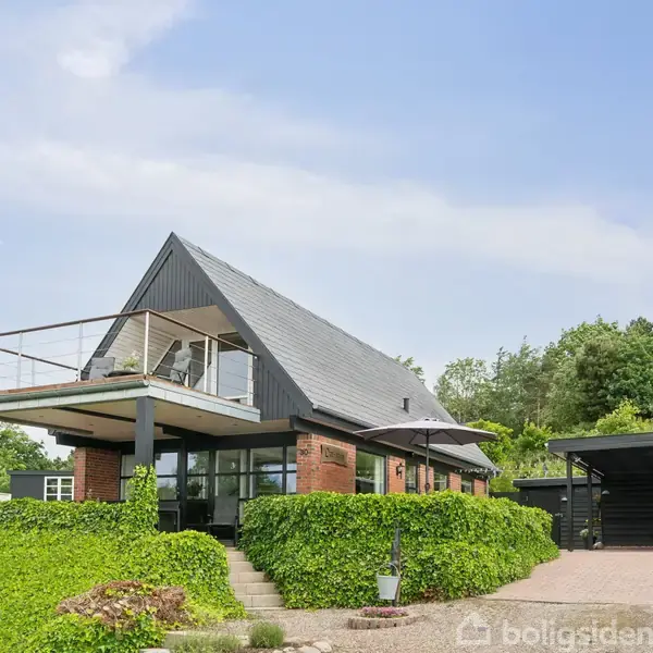 Solidt fritidshus med udsigt over Vigen - mulig lejeindtægt på ca. 100.000 på 20 ugers udlejning!I bakkerne på Guldkysten, positivt tilbagetrukket fra Kystvejens trafik, i udkanten af Ebeltoft, ligger dette velplacerede fritidshus med fantastisk udsigt. Fritidshuset er opført i 1975 i røde mursten med sorte vinduesrammer og andet træværk. Det fremstår virkelig velholdt og i fuldstændigt indflytningsklar stand. Alt er bygget i gode materialer og høj kvalitet og det er muligt at benytte det hele å
