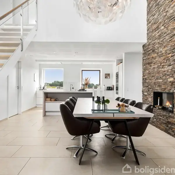 Smuk, arkitekttegnet villa og eksklusive materialevalg kendetegner denne imponerende ejendom på Skæring Hedevej 81, hvor I får en sjældent stor grund på hele 5.516 m² og frit udsyn over åbne marker. Her forenes moderne arkitektur med ro, plads og natur i en bolig, der indbyder til både hverdagsliv og livsnydelse i særklasse. Ejendommen er opført i 2015 og rummer 250 veldisponerede kvadratmeter fordelt over to plan, hvor kvalitet og funktionalitet går hånd i hånd.Allerede ved ankomsten fornemmer