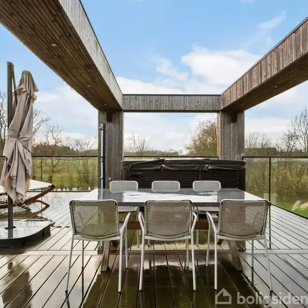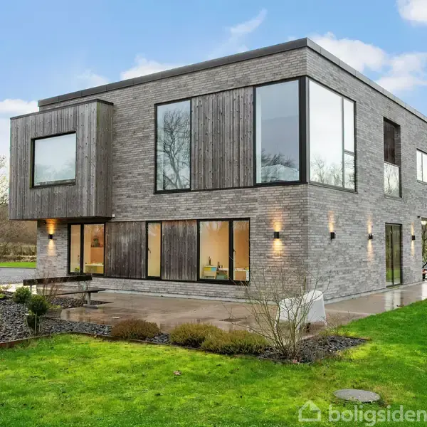 Åbent hus med tilmeldingskrav 3/2 - klik på billede - Her får du en moderne funkisvilla fra 2020 i meget god stand med gennemtænkt løsninger, hvor man har tænkt både energi- og vedligeholdelsesvenligt. Du får ligeledes en velfungerende planløsning og ikke mindst en naturskøn placering tæt på Vejle. I stueplan træder du ind i en rummelig hall med trappe til 1. salen omkring et centralt multirum. Herfra er der adgang til 3 gode børneværelser samt et badeværelse med bruseniche og Vola-armaturer. Herfra er der også adgang til et bryggers med god skabsplads og direkte indgang til den dobbelte garage på 69 m² med gode opbevaringsmuligheder. På første sal ligger det primære opholdsrum med et stort køkkenalrum i åben forbindelse med stuen. Store vinduespartier giver udsyn til de grønne og ugenerte omgivelser, og fra stuen er der kig over landskabet. Fra køkkenalrummet er der udgang til en stor vestvendt tagterrasse med glasværn og udendørs bruser, hvor du kan nyde eftermiddags- og aftensol. Forældreafdelingen på samme etage fungerer som en privat suite med soveværelse, walk-in-closet og badeværelse med eksklusivt inventar og Vola-armaturer. Herfra er der ligeledes udgang til en udendørs bruser. Hele boligen har gulvvarme, genvindingsanlæg, centralstøvsuger, BVT-anlæg og jordvarme, som tilsammen giver en komfortabel og energieffektiv hverdag. Grunden på over 6.500 m² ligger omgivet af marker, eng og træer og giver en rolig, ugeneret atmosfære med god plads til udeliv og leg. Du bor i landlige omgivelser med korte køretider til Vejle med indkøb, skole, daginstitutioner, fritidsaktiviteter, caféer og gode forbindelser til motorvej og omegn. Alt i alt en moderne og velindrettet familiebolig med fire værelser, to badeværelser og gode opholdsrum med mange anvendelsesmuligheder. Egner sig til dig, der ønsker kombinationen af nutidig komfort og landlig ro og idyl tæt på byen.