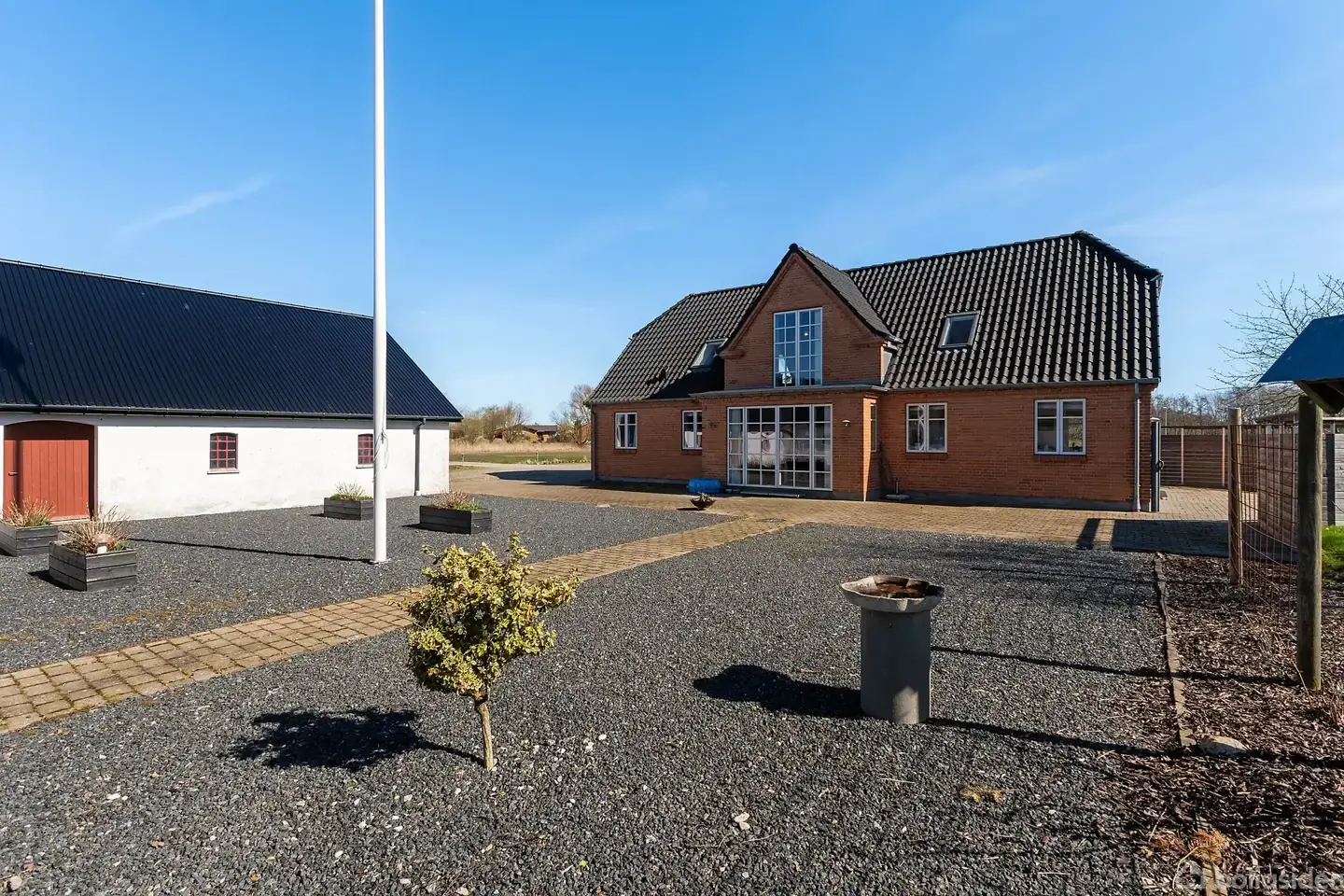 Rummelige landejendom, tidligere rideskole, udbydes til salg i Strandby.