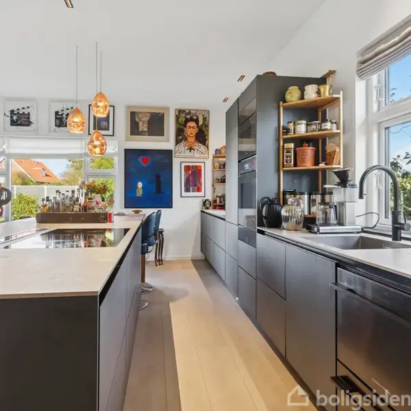 Familievenlig villa med god plads tæt på vandetDenne villa fordelt over tre plan byder på en veldisponeret indretning, som passer godt til den store familie med både små børn og teenagere. Hvor stueplanet er dedikeret til samværet og sammenkomster, rummer førstesalen værelsesafdelingen, mens det nederste plan også byder på bl.a. 2 værelser. Huset fremstår i god stand med opdaterede elementer som tag, facader, vinduer, gulve, vægge og køkken, der giver et indbydende og velholdt udtryk. Beliggenhe