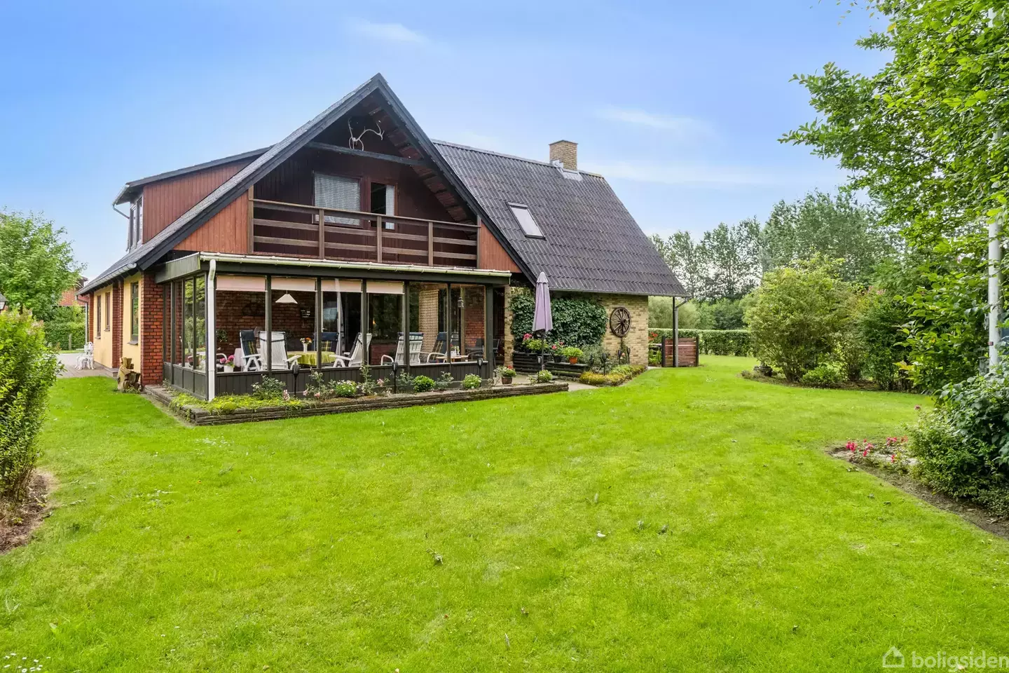 Tæt ved Hjørring ligger denne villa, som giver jer masser af plads inden døre og omkring jer. Villaen ligger i Skibsby med udsigt ud over markerne, og boligen giver jer hele 277 kvadratmeter at indrette efter jeres behov. I får talrige værelser og opholdsrum, og den autentiske stemning er gennemgående i hjemmet. Udenfor har I en sydvendt have og to garager. De mange stuer bidrager med hver deres særlige udtryk. Læg blandt andet mærke til den hyggelige pejsestue, som er belagt med klinker, har s