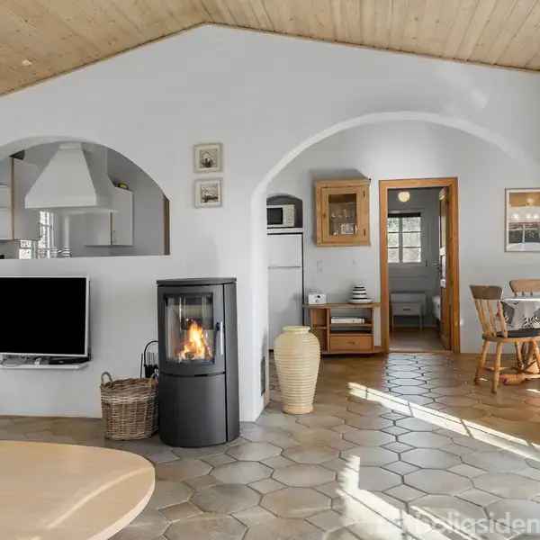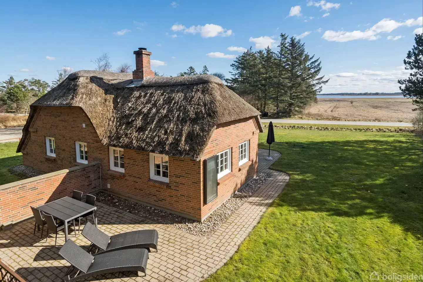 Åbent hus med tilmeldingskrav 3/2 - klik på billede - I det naturskønne sommerhusområde Fjand ligger dette fine og gedigne sommerhus i første række ud mod åbne marker, og med en virkelig flot udsigt over Nissum Fjords rolige vande. Området er præget af hede, skov, fjord og ikke mindst Vesterhavet, som ligger kun 3 km fra huset, hvilket gør det ideelt for naturelskere med mulighed for utallige vandre- og cykelture. Helmklit Havn, en stemningsfuld lille havn ved Nissum Fjord, tiltrækker både lokale fiskere og fritidssejlere. I nærheden ligger også en legeplads, som med garanti vil begejstre områdets yngste besøgende. Fritidshuset er opført i 1999, bygget i teglsten med praktiske hvide plastvinduer og stråtag. Derudover rummer det et integreret udhus med plads til opbevaring. Rundt om huset er flisebelægning samt to skønne terrasser - en sydøstvendt terrasse, hvor blikket naturligt vandrer mod fjordens glitrende vand i horisonten, og en vestvendt terrasse med læmur og afskærmning, perfekt til at nyde aftensolens varme stråler. På grunden er høje træer, der skaber en privat og uforstyrret atmosfære. Fritidshus er indrettet med komfort og hygge for øje, så du straks føler dig hjemme. Du træder ind i en praktisk entré med klinkegulv og god skabsplads - perfekt til at holde styr på overtøjet efter en dag i naturen. Huset rummer tre lyse værelser med opbevaringsplads, hvor der er plads til hele familien. Badeværelset er en sand oase med gulvvarme, bruseniche og stilrent inventar. Her kan du forkæle dig selv med en tur i spabadet eller nyde varmen i saunaen efter en lang gåtur ved fjorden. Derudover er der en praktisk vaskesøjle med både vaskemaskine og tørretumbler. Husets naturlige samlingspunkt er det åbne køkken/alrum, som smelter sammen med den hyggelige stue. Her kan du nyde kvalitetstid med familien - uanset om det er under madlavningen, et brætspil ved spisebordet eller ren afslapning i sofaen. Fra stuen åbner store glaspartier op for en fantastisk udsigt over fjorden, der bringer naturen helt ind i rummet. Og på kølige dage spreder brændeovnen sin varme. Fritidshuset er tilmeldt udlejning i dag. Indbo medfølger som beset, dog undtaget personlige effekter. Hvis sommerhuset ønskes udlejes eller blot er nysgerrig på hvad huset kan indbringe i udlejning, så har EDC Ulfborg et udlejningsbudget, som er udarbejdet af det lokale feriehusudlejningsbureau Feriepartner Vedersø Klit og Thorsminde Vi opfordrer altid til, at udlejningsbudgettet følges op med en uforpligtende snak med Feriepartner, så dine ønsker for udlejning kan tilpasses i budgettet.