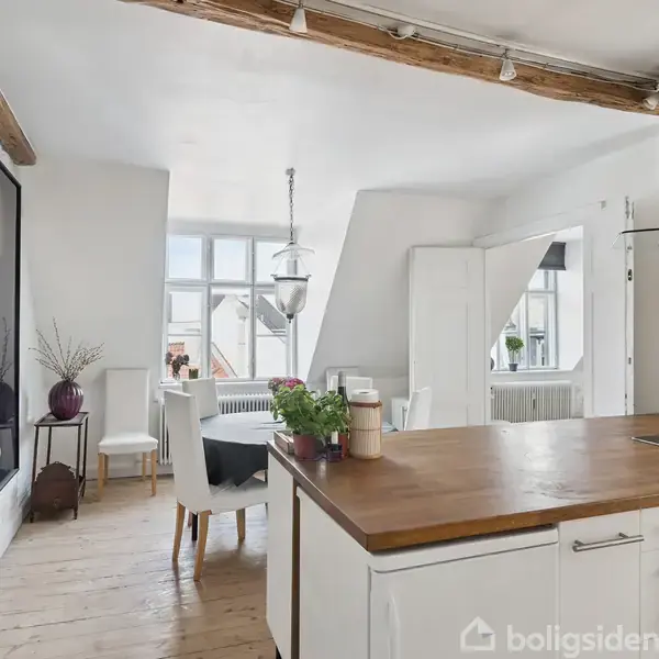 Det sitrer altid af charme på Gråbrødre Torv, og hvilket bedre sted at bosætte sig for livsnyderen med hang til caféliv, sociale aftaler og kulturelle arrangementer. Din base ligger lige om hjørnet i en historisk og fredet ejendom fra 1830, hvor du skal helt til tops for at komme hjem. Den skyhøje placering boner ud i en usædvanlig udsigt til blandt andet Rundetårn, som kun bidrager positivt til boligen, der udbydes som et håndværkertilbud med mulighed for at skabe drømmehjemmet. Vinden blafrer