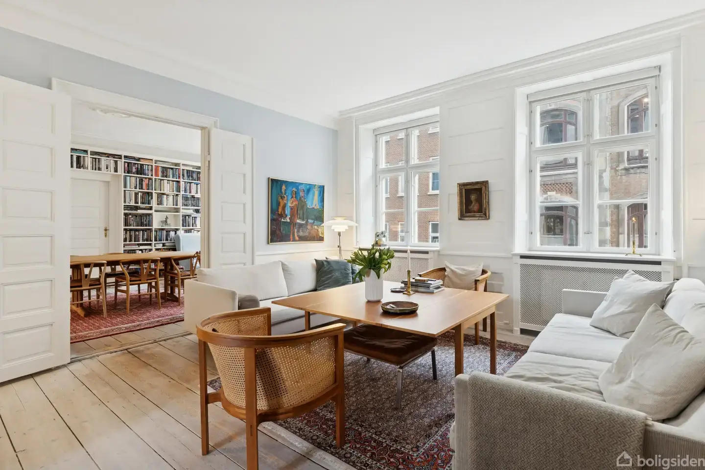 Der er noget helt særligt over at træde ind i denne lejlighed på Skindergade – en varme og ro, der mærkes med det samme. Her møder klassisk København K-herskabelighed moderne komfort på den mest naturlige måde, og resultatet er et hjem fyldt med sjæl, historie og gennemtænkte løsninger.Lejligheden byder på den plantegning, som alle drømmer om: To smukke stuer en suite med højt til loftet og fine detaljer, kombineret med et stort, åbent køkken-alrum, hvor familien og gæster samles helt naturligt.