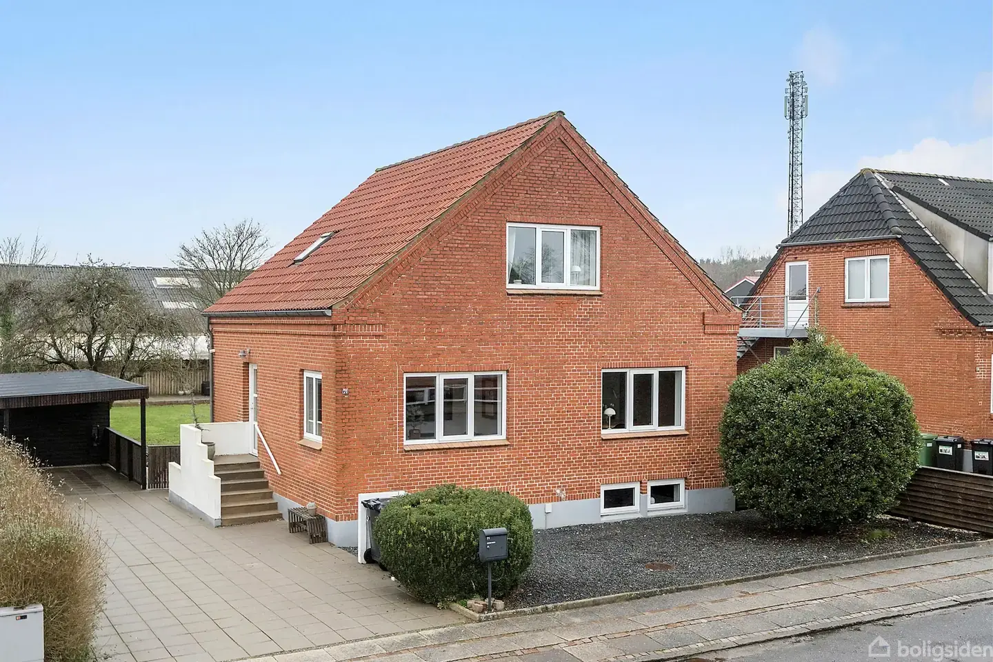 Åbent hus med tilmeldingskrav 6/2 - klik på billede - Dette skønne byhus er beliggende på Skivevej 71 i gåafstand til bymidten. Derudover er der kort og nem adgang til motorvejen og stationen, hvis man pendler. Huset fremstår flot og indflytningsklart, opført i rød murermesterstil, betontagsten samt hvide PVC vinduer. Indretning: Stueplan: Entré med trappeop- og nedgang. Lækkert køkken/alrum i åben forbindelse med stor og rummelig stue - begge steder med moderne laminatgulv. Lyst og skønt badeværelse med stor brusekabine. På 1. sal er der soveværelse, to gode værelser samt en repos, som er ideel til åben kontorplads. I kælderen er der gode disponible rum med mulighed for bl.a. vinrum, hobbyrum, opbevaring mv. samt vaskerum. Til huset hører en nyere opført carport fra 2022 med indbygget redskabsskur/værksted. Den store, fantastiske og vestvendte have har en hævet træterrasse med direkte adgang fra køkkenet. Derudover er der endnu en stor træterrasse i bunden af haven