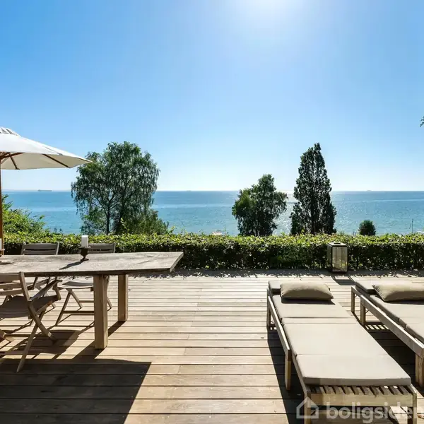 Skodsborg Strandvej er vejen mellem havet og skoven, mellem vandet i Øresund og dyrene i Jægersborg Hegn og Dyrehaven. Derfor er der ikke så mange ejendomme i Skodsborg, for byen er det smalle, smalle kystbælte mellem Vedbæk og Tårbæk. Men altså, at være klemt inde mellem vand, strand og skov, det er nu heller ikke så ringe endda, som de siger i Jylland. Ejendommene på vandsiden er privilegerede, de har deres egne strande, deres egne mageløse udsigter og nogle få matrikler, man kun finder oppe på Nordkysten mellem Kikhavn og Gilleleje. En af de få matrikler er er Skodsborg Strandvej 270. Det skimtes svagt fra Strandvejen, men hvad man slet ikke kan se, er, at alt i huset er orienteret mod vandet. Ja, man hører kun vandet, især når det viser tænder, som sammen med den svenske kyst fylder huset med en udsigt, der ikke er mange af i Nordsjælland. For huset ligger højt i terrænet, omkring 25 meter. Højt betyder dyb horisont, og det er der her på skrænten ned til den private strand. Grunden er kuperet, og huset følger terrænet. Haven ligger derfor på 1. sal, det samme gør saunaen. Alt ligger ugeneret, kun fuglene pifter til liggestolene på terrassen, når de flyver forbi. Huset har en sjælden stoflighed med små oplevelser, når man går rundt om det. Det er vokset langsomt frem siden sin fødsel i 1954. Der har været tid til at nytænke udvidelse og forbedringer. Med 308 etagemeter, hvor de 144 m2 ligger i underetagen, får familien med børn det godt her. Indkøb er kystbyen Vedbæk en lille kilometer væk. Byen er en skøn blanding af Hornbæk og Båstad i Sverige. Vedbæk er en gammel fiskerby, som altid har forstået, at det gamle skal med ind i det nye, hvis man som by vil være autentisk og original. Kystbanen er her, hotellet, havnen, vinterbaderne, iskiosken, bageren og supermarkederne. Men fiskekutterne er her også, og de lægger til med friske fisk hver dag.