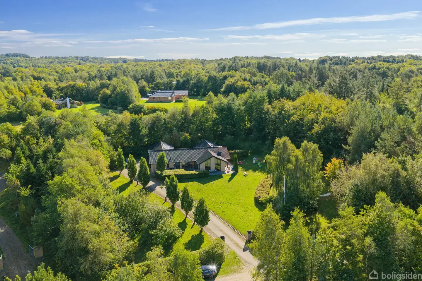 Forestil dig at vågne op til lyden af fuglesang, åbne døren og træde ud på din helt egen ugenerte naturgrund på 5514 kvm i skoven. Her på Skodshøj 39 i Guldbæk får du en hverdag omgivet af ro, privatliv og grønne omgivelser – og samtidig den tryghed og nærhed, som et stærkt landsbysamfund giver. Ejendommen byder på hele 224 kvm arkitekttegnet og fuldmuret bolig, som er opført i 2002 i kvalitetsmaterialer, og fik i 2010 en flot ombygning, der giver ekstra albuerum og fleksible indretningsmuligh