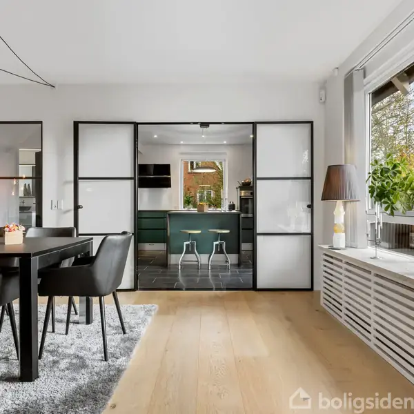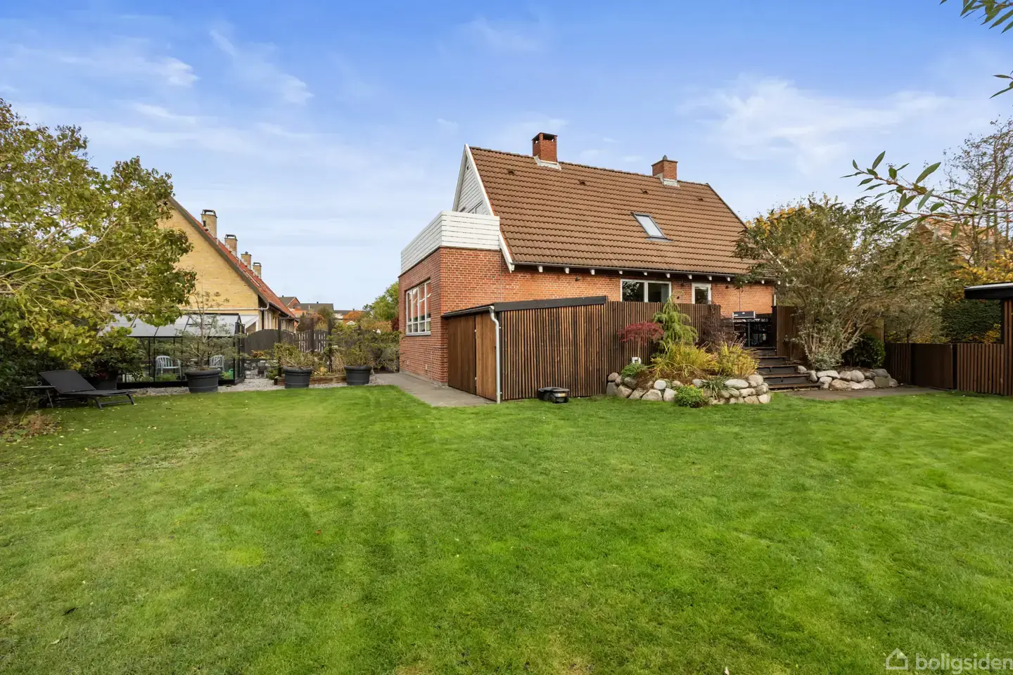 Murstensvilla 206 etage m², og 698 m² grund.Velkommen til en solid murstensvilla fra 1955, der kombinerer klassisk byggestil med opdaterede, indrettede rum. Boligen er på 149 m² med 3 værelser og 2 badeværelser, dertil en kælder på 57 m² og en grund på 698 m². Ejendommen blev ombygget i 1966.Førstehåndsindtrykket er et velholdt hus med tydelig og funktionel rumfordeling, store vinduespartier og en terrasse, der binder huset naturligt sammen med haven.Indretningen i stueplan er gennemtænkt med åb