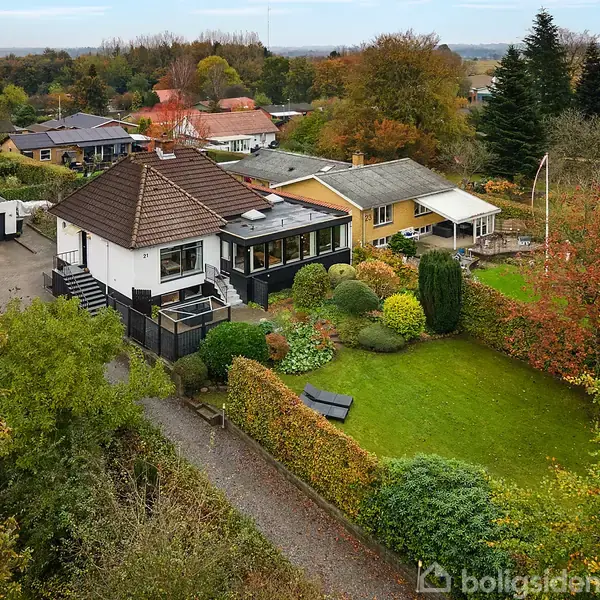 Velkommen til Skolegade 21 – en villa med plads til familieliv og hverdagens bekvemmeligheder Drømmer I om en bolig, hvor der er tænkt på både hverdagen og de små øjeblikke? På Skolegade 21 finder I en charmerende og veldisponeret villa, som er ideel til børnefamilien – eller til parret, der ønsker mere plads og frihed. Her kombineres funktionelle rammer med en attraktiv beliggenhed tæt på byens hverdagstilbud. Fredeligt og funktionelt – med solvendt have og hyggelige uderum Villaen ligger dejl