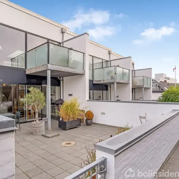 Ejerlejlighed tegnet af A2 Arkitekterne A/S - gennemtænkt indretning og opført i smarte tidløse materialer. Udvendige facader er hvidpudsede med et mix af sort træbeklædning. Der er sorte træ-/alu. vinduer med skydedørspartier og altaner med galvaniseret gelænder og mat glas.I alt 4 stort set identiske ejerlejligheder opført i 2007 beliggende i centrum af Holstebro få hundrede meter fra gågademiljøet, grønne områder etc.Ejerlejligheden er i to plan og der er gulvvarme overalt i træ- og klinkegul