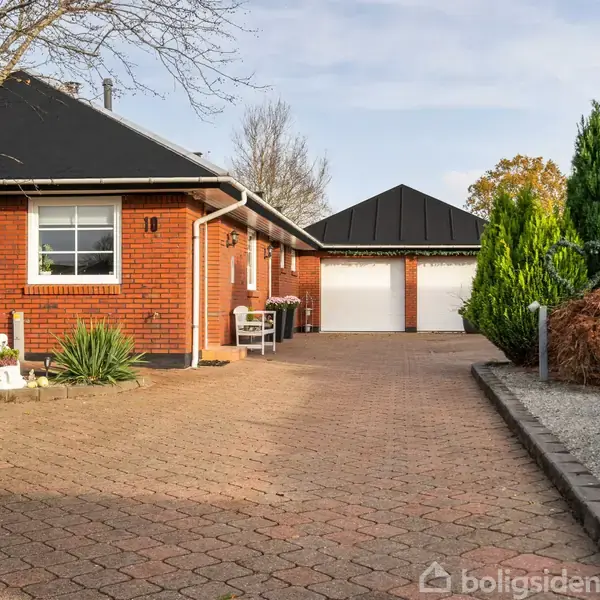 Åbent hus med tilmeldingskrav 25/2 - klik på billede - Her udbydes en lys og velholdt villa på hele 165 m2 + en dejlig udestue, der tilføjer en række flotte, lyse kvadratmeter til det registrerede boligareal. Boligen passer perfekt til en børnefamilie, der ønsker god plads, sydvendt have og trygge omgivelser med kort gåafstand til skole. Ejendommen er opført i 1976, men det er ikke kulørte fliser og mørkt træ, der møder dig indenfor i rødstensvillaen. Den er nemlig forvandlet til et lyst, tidløst hjem med stilrent interiør, lyse listelofter og et harmonisk miks af lyse gulve og mørke klinker. Køkkenet er delvist forbundet med spisestuen via en bred døråbning - og den samme overgang ses mellem spisestuen og dagligstuen. Det giver et dejligt flow i hverdagen og gør det muligt at adskille familiens aktiviteter, så I ikke altid behøver lave det samme. Spisestuen har brændeovn, og fra dagligstuen kan en bred skydedør åbnes helt op, så opholdsarealet udvides med 19 m2. Foruden opholdsrummene byder boligen på klassisk pistolgang med badeværelse, gæstetoilet og fire soveværelser, og i forlængelse af køkkenet findes husets praktiske bryggers. Udenfor er der en dobbelt garage med integreret redskabsrum og elektrisk port. Huset er placeret nogenlunde midt på grunden, hvilket giver mulighed for at skabe hyggekroge og terrasser som opfylder jeres behov, uanset om læ, privatliv, sol eller skygge er det vigtigste for jer. Haven har en stor nytteafdeling med drivhus og plads til adskillige grøntsags- og kartoffelrækker. Beliggenheden fortjener også et par ord med på vejen: Næsbjerg er en aktiv, mindre by 8-9 km fra Varde. Her er supermarked, dagpleje, børnehave, SFO og bypark, og der er gåafstand til det hele fra Skoleparken. Kort fortalt en flot velholdt familiebolig med en god planløsning blot få minutters gang fra skolen i Næsbjerg.