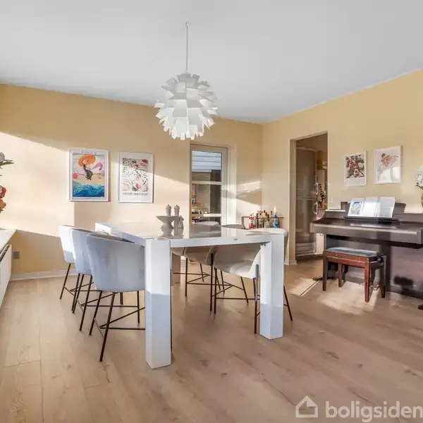 Velkommen til Skoleparken 4Dette skønne rækkehus i ét plan byder på hele 122 veldisponerede kvadratmeter og egner sig perfekt til både familier, seniorer og førstegangskøbere, der ønsker en nem bolig i rolige omgivelser.Planløsningen er både praktisk og funktionel med tre værelser, et lyst badeværelse samt et separat gæstetoilet. Køkkenet er placeret centralt og i åben forbindelse med den store, lyse stue, hvor der er rigelig plads til både spise- og sofaafdeling.Fra stuen er der direkte adgang