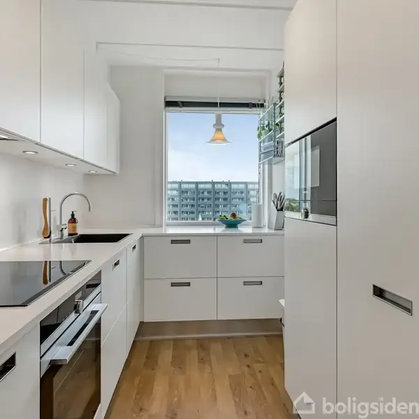 Velkommen til Skoleparken 7, 5. th – en moderne og indflytningsklar lejlighed på hele 93 m² med en fantastisk udsigt.Indretningen starter i en rummelig entré, hvor der er god plads til både overtøj og sko. Herfra føres du videre ind i det lyse og moderne køkken, der fremstår i en nyere stand. Badeværelset er stort og nyere, og byder på tidløst interiør og god plads til hverdagens rutiner.Lejlighedens naturlige samlingspunkt er den store og indbydende stue, hvor det generøse lysindfald og den åbn