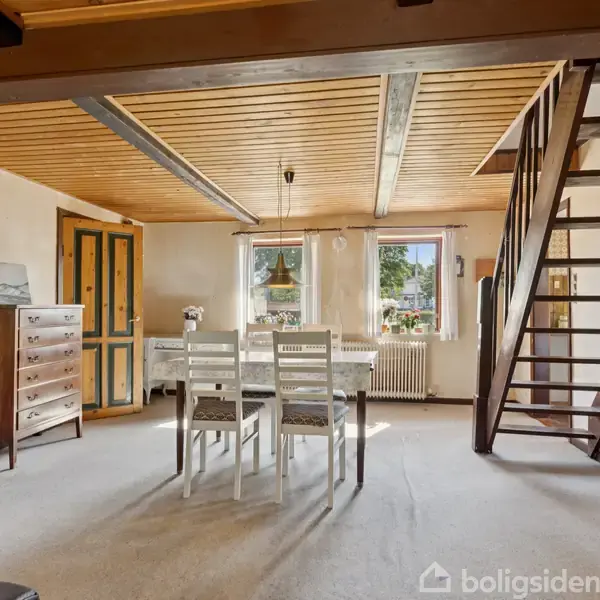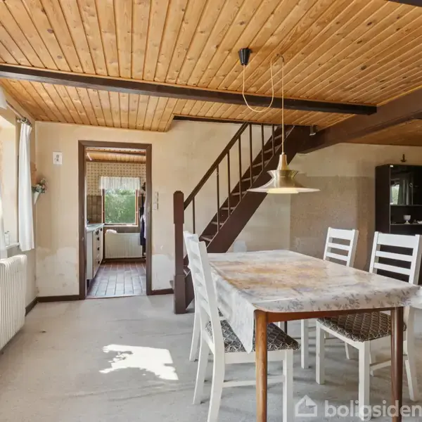 Velkommen til Skolestien 7 – et hus, der ikke prøver at skjule sin alder, men til gengæld gemmer på masser af muligheder. Her får du 94 kvadratmeter ægte retro-charme og 62 kvadratmeter garage, der skriger på enten værksted, mancave, opbevaring – eller bare et sted til at gemme julepynten.Huset er en vaskeægte tidslomme – og ja, det trænger til en seriøs kærlig hånd. Men med to stuer (én oppe og én nede), to værelser, et badeværelse og en god, klassisk planløsning, har du fundamentet for at skab