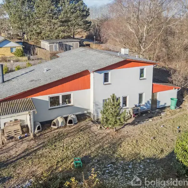 Ikke ret langt fra hverken skole, tog eller idrætsfaciliteter finder I denne villa i Svebølle. Beliggenheden giver en nem og bekvem hverdag, og planløsningen udfolder sig over adskillige forskudte plan med masser af charme. Haven er der heller ikke noget at udsætte på. Fred, ro og korte afstande Fra hoveddøren er der ikke mere end 300 meter til Svebølle Skole. Går I et par hundrede meter længere, finder I togstationen, og på omtrent samme distance når I Svebølle Hallen. Dagligvarebutikker, pasn