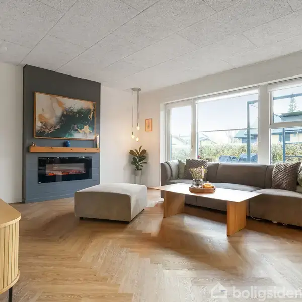 Velkommen til en stilren og indflytningsklar villa, som gennem de seneste år er blevet gennemgribende moderniseret. Her får du bl.a. nyt køkken, flotte gulve, to moderne badeværelser og generelt en bolig, der fremstår lys, lækker og tidssvarende. Beliggenheden er ideel – du bor i et roligt område med kort afstand til skole, indkøb, idrætsfaciliteter, togstation og byens øvrige tilbud.Indretning:Fra den indbydende entré er der adgang til tre gode og regulære værelser samt et flot, nyere badeværel