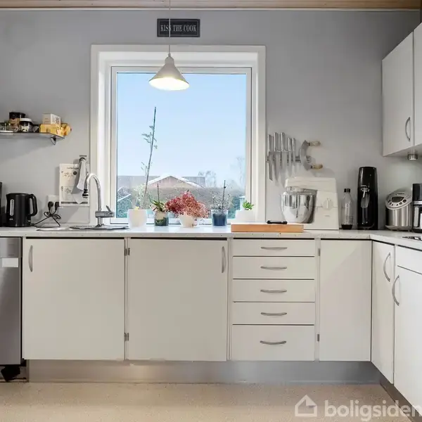 I det hyggelige og børnevenlige Ølholm, tæt på både skole og natur, finder I denne rummelige ejendom på Skolevej 13. Her præsenteres en bolig, der med sine tre veludnyttede plan, en god garage og en skøn, lukket have danner gode rammer for leg og hyggelige timer. Når I ankommer til huset, mødes I af en god garage med god loftshøjde, der ikke blot giver plads til bilen, men også giver gode muligheder til hobby eller til opbevaring af cykler og værktøj. Fra indkørslen ledes I ind i boligens entré, som fungerer som knudepunkt med trappeforløb til både førstesalen og kælderen. Stueplanen åbner sig op i et indbydende køkken, der ligger i delvis åben forbindelse med den rummelige vinkelstue. Stuen er husets naturlige samlingspunkt, hvor de store vinduespartier sikrer et behageligt lysindfald. Herfra er der direkte udgang til en lys udestue, som forlænger sommersæsonen og skaber en flydende overgang til haven. Stueplanen rummer desuden huset badeværelse og et godt regulært soveværelse. Bevæger man sig ud i haven, finder man en sand oase. Den store, lukkede have er anlagt, så den kræver minimal vedligeholdelse, men samtidig giver maksimalt privatliv. Her kan børnene lege frit og trygt, mens de voksne nyder roen i ugenerte omgivelser. Boligens førstesal er godt indrettet med repos og tre værelser i varierende størrelser. Huset fuldendes af en yderst brugbar kælder med god loftshøjde og egen indgang. Kælderen rummer et praktisk bryggers med vaskefaciliteter samt to store disponible rum og et depot, hvilket giver masser af plads til alt fra multirum til ekstra opmagasinering. Med en placering i Ølholm bosætter I jer i et stærkt lokalsamfund med kort afstand til alle hverdagens fornødenheder i Tørring og nem adgang til motorvejsnettet. Skolevej 13 er kort sagt boligen til familien, der ønsker plads, funktionalitet og et ugeneret udeliv.