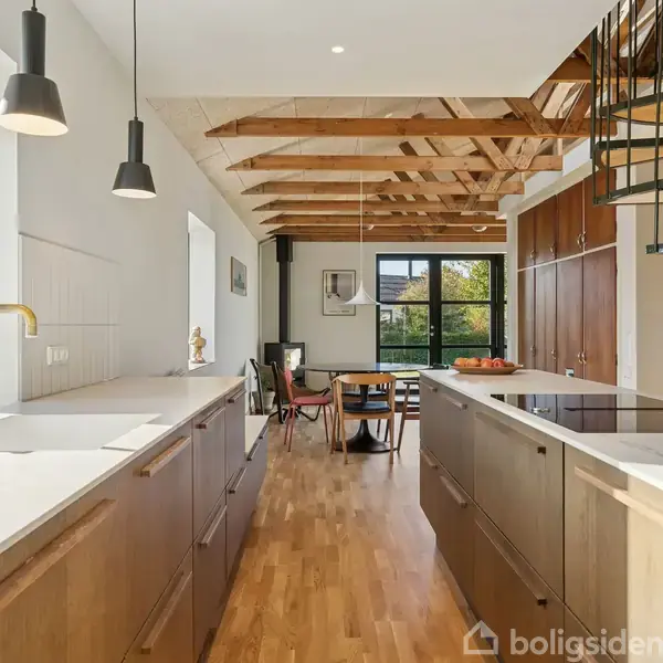 BUD MODTAGES - Er I på udkig efter en indflytningsklar bolig i rolige omgivelser, bør I se nærmere på Skolevej 30. Denne velindrettede murstensvilla fra 1962 ligger på en 686 kvm grund og rummer hele 192 etagemeter, fordelt på stueplan og en funktionel kælder. Huset er i nuværende ejerskab renoveret med fokus på tidsløshed, kvalitet, fleksible løsninger og respekt for de originale detaljer – et hjem, der kan tilpasses livets forskellige faser. I 2022 blev boligen gennemgribende renoveret, ligesom kælderen er løbende renoveret i nuværende ejerskab. Heriblandt kan nævnes nyt tag på både hus og garage, udskiftning af alle vinduer og yderdøre, ny isolering af vægge samt etablering af gulvvarme i hele stueetagen. Derudover er der lavet nye elinstallationer og eltavle, fibernet samt nye VVS-løsninger. Indretningen byder jer velkommen i en entre med adgang til husets ene moderniseret badeværelse fra 2022 samt to værelser, der kan adskilles eller åbnes via skydedøre. Stueetagen samler jer i et indbydende opholdsrum med loft til kip, hems og ovenlysvinduer, hvor det klassiske køkken, spiseplads og stue går op i en højere enhed. Køkkenet fra 2022 er fra Invita med Neff hårde hvidevarer og indbygningskøleskab. Brændeovnen i stuen giver hygge på kølige aftener, mens spindeltrappen binder etagerne elegant sammen. I kælderen, som også har egen indgang, finder I tre gode disponible rum, endnu et moderniseret badeværelse med gulvvarme, dette fra 2020, samt et vaskerum. Udenfor venter en dejlig grund, hvor den sydvendte egetræsterrasse og have inviterer til hyggelige stunder med familie og venner. Garagen giver mulighed for etablering af et hobby- eller multirum.