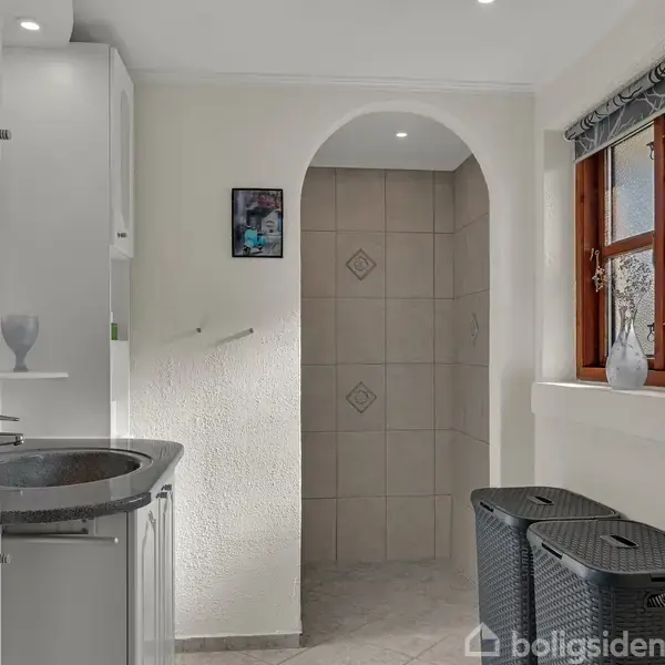 Velholdt, energioptimeret og indflytningsklar 1½-plans villa i Pandrup med pudsede facader, beton-tag og både luft-vand-varmepumpe, solceller og stort batteri til at gemme strømmen fra solcellerne. Villaen er beliggende tæt på indkøb, busstoppested og i kort afstand af Skolecenter Jetsmark, det nyrenoverede Jetsmark Idrætscenter med 2 sportshaller, svømmehal, springgrav m.m. Fra Pandrup er der ca. ½ times kørsel til Aalborg/Hjørring og gode busforbindelser. Indretning: Indgang fra flisebelagt