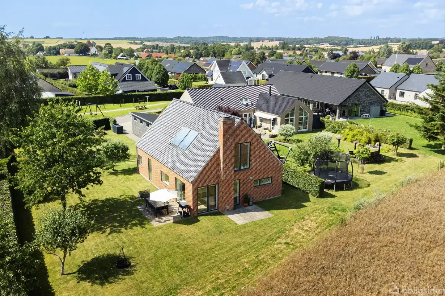 Åbent hus med tilmeldingskrav 15/2 - klik på billede - I Landsbyen Vigersted i den østlige del af Ringsted kommune, ligger denne velindrettede rødstensvilla med fuldmurede gavle, zinktagrender og flot sortmatglaerede tegltag. Skovbakken er en bebyggelse med i alt 35 huse, flot og højt beliggende i landskabet. Særdeles god garage, som i dag er indrettet til det fineste værksted/hobbyrum, måske til en motorcykel eller 2. eller måske eget fitnesscenter Her er der også håndvask m.v. Gode parkeringsforhold foran villaen. Selve villaen har et hyggeligt og atmosfærefyldt boligmiljø, og en både praktisk og anvendelig indretning - dertil god loftshøjde (2,49 m. i stueplan). Rigtig mange fine bygningsdetaljer, som både skal ses og opleves. Nem have at holde og med åbent look direkte til markerne mod skoven. Indretning i stueplan med kombineret bryggers/entre med god skabsplads, godt kontor/gæsteværelse, 2 gode værelser og skønt badeværelse med brus. Den store opholdsstue er sammenbygget med køkkenet, så der både er fornemmelse af køkken/alrum på den ene led og opholdsstue på den anden led, med fin trappe til 1. salen i hjørnet samt velfungerende brændeovn. 1. salen har repos, fint badeværelse med kar, stort værelse i vest gavl og panoramastue i øst gavlen, gode nordvendte tagvinduer mod giver godt indirekte lys. Vigersted er kendt for sin smukke natur og kuperede landskab, skole til 9. klasse, mange aktiviteter og nem adgang til Borup station. Humleoreskoven giver de bedste naturoplevelser. Kom og kig.