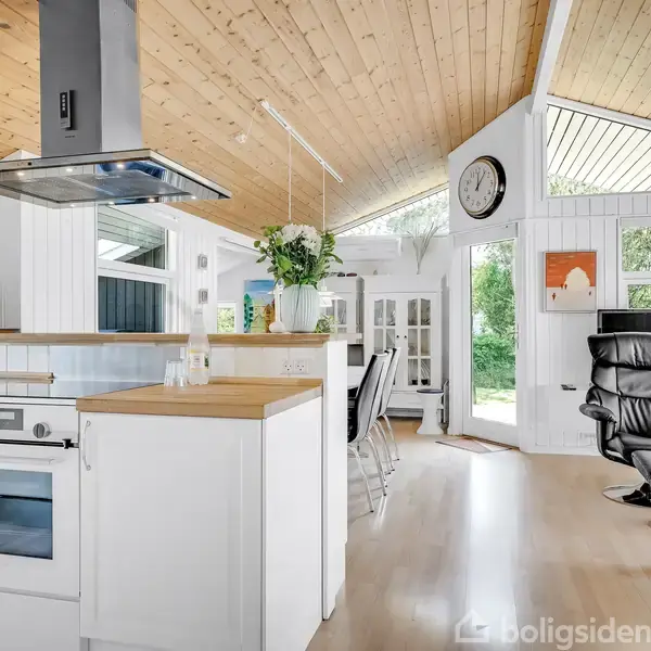 CHARMERNDE, VELHOLDT OG IDYLLISK SOMMERHUS I NATURSKØNNE OMGIVELSER.Du får her et skønt sommerhus, der rummer over 93 boligkvadratmeter og er beliggende på en 2.403 m² stor grund i skønne omgivelser i sommerhusområdet Sunddraget. Et naturskønt sommerhusområde som er velbeliggende med fjorden på begge sider. Sommerhuset her er opført 1994, og er løbende over årene blev renoveret og moderniseret og består af:Entré/fordelingsgang med laminatgulv. 3 gode værelser, 2 af dem med dobbeltsenge og faste