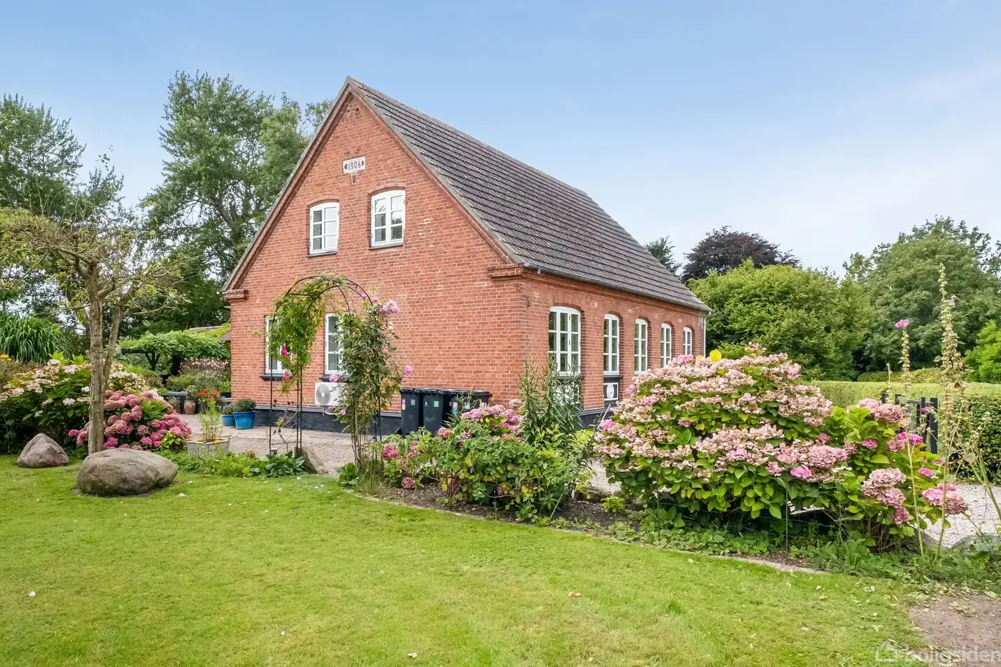 CHARMERENDE EJENDOM PÅ IDYLLISK PLET I SKOVBY På stor dobbeltgrund i den lille hyggelige landsby Skovby finder du denne dejlige villa. Skovby er beliggende på den nordlige del af Ærø med få km til Søby med færgeforbindelse til Faaborg og Fynshav. Bussen som er gratis kører gennem Skovby og kan tage dig rundt på hele Ærø. Kun ca. 1 km fra Skovby er der dejlig badestrand - hvor der også er bådophalerplads. Skovby er en landsby med meget sammenhold både for herboende og for fritidshus-gæster.Ejendommen er opført i 1908 og fremstår meget harmonisk i samspil med den velanlagte have og de andre bygninger. Er renoveret i 2005 - med nye døre og vinduer.Her er en følelse af at være på landet mens du stadig har kontakt med naboen.Ejendommen indeholder: Stor lys stue med udgang til gårdspladsen, samt til forhaven med flot Indisk spindeltrappe til 1.sal og til kælder. Stuen er i åben forbindelse med køkken som har lyse elementer og mørk bordplade. Fra stue er der adgang til mellemgang med dør ud til til forhaven og indgang til gæstebadeværelse med bruseniche. Via mellemgang kommer man ud i stort bryggers med installationer til vaskemaskine, dør ud til gårdspladsen samt trappe til 2. del af 1.salen. Fra bryggers er der udgang til stort flot badeværelse med bruseniche, badekar og dør ud til forhaven. 1.salen er opdelt i to afdelinger. Via spindeltrappen fra stuen kommer man op på repos med adgang til 2 gode værelser med synlige bjælker. Via trappe fra bryggers er der soveværelse ligeledes med synlige bjælker samt med adgang til walk-in closet. I kælderen er der et disponibelt rum.I forlængelse af ejendommen er der garage. I haven findes endvidere et muret udhus med værksted med overdækning. Der er også drivhus samt lille charmerende muret legehus i haven. Hele haveanlæget er meget flot og charmerende anlagt. Der er terrasse, blomsterbede, stor græsplæne samt plads til nyttehave. En ejendom som skal ses og opleves.Ejendommen er opvarmet af oliefyr og er tilsluttet vand fra Søby vandværk. Energimærke, tilstandsrapport og elinstallationsrapport kan bestilles på [email protected] Lidt om Skovby:En lille landsby, hvor godt sammenhold i lokalsamfundet. Der afholdes bla. fælles aktivite flere gange om året. Ved "Skåret" har vi stranden med bådophalerplads, og hvor der er opsat bro af de lokale. Desuden er der boldbane.. og der kan berettes også om den årlige fodboldkamp mod Leby. OM SØBY:ca 5 km fra Skovby ligger Søby - som ligger i den nordlige ende af Ærø, og har færgeforbindelse til Als og til Faaborg/Fyn.Søby har bl.a. supermarked, bager og godt spisested. Naturen er nær. Vitsø med dæmningen ved Østersøen, Golfbanen næsten som "nabo". Havnen med aktivitet fra fiskebåde og lystsejlere. Stranden ligger lige ved siden af lystbådhavnen. Så det hele er i meget nær afstand.ÆRØEn ø kan bedst beskrives som et mikrokosmos, hvor man på trods af størrelsen, stadig kan finde 'alt' - fra sygehus til behandlere, fra skoler til folkeuniversitet, fra idrætshaller til aktivitetshuse, fra byggemarked til specialbutikker, fra grillen på havnen til gourmet-restauranter. På Ærø har det kommunalt været en hjertesag, at øboernes livskvalitet er i top, f.eks. ved at forbinde hele øen med gratis bus med stort set timedrift - noget der som regel overrasker behageligt, når turister besøger øen. Hvis man skruer tiden tilbage til dét Danmark, der var engang, dengang hver by havde sit eget handelsliv, kulturliv, så vil man se, at det engang var normen, at 'alt' var indenfor rækkevidde. Sådan er ø-livet stadig i dag - et samfund, der på trods af sin lidenhed, udgør et helt univers.Og det er derfor, at vi siger, at 'Drømmen er på en ø'!