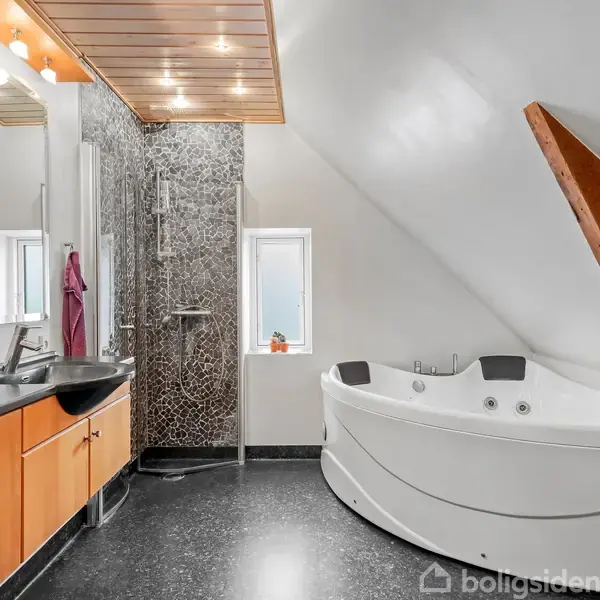 Velkommen til Skovbyvej 2 i Hoptrup – en flot villa der løbende er istandsat og fremstår meget velholdt og forener moderne komfort med rummelig fleksibilitet og en dejlig beliggenhed tæt ved Slivsø. Her får du et hjem, der med sine mange kvadratmeter, gennemtænkte planløsning og med to separate enheder, giver ideelle rammer for den store familie, to generationer eller en attraktiv udlejningsdel.Villaen fremstår indbydende og funktionel med en solid planløsning i flere niveauer. I stueplan bydes