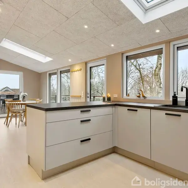 Åbent hus med tilmeldingskrav 6/2 - klik på billede - Hvalpsund er et af Limfjordens stille vidundere – et sted hvor himlen åbner sig, lyset danser over fjorden, og hverdagen bliver blødere i kanterne. Her mødes roen fra naturen med små lokale lommer af liv; en badebro, et ishus, en cykelsti gennem landskabet, og den særlige atmosfære, som kun kystnære sommerhusområder kan bære. Området favner både det gamle fiskerlejes charme og den moderne sommerhusdrøm, hvor familier finder nærvær i naturens tempo. Hvalpsund er det sted, man vender tilbage til – fordi luften, stilheden og udsigten simpelthen gør noget godt for én. På Skovduevej 28 møder man et sommerhus, hvor alt er nyt, gennemtænkt og udført med kærlighed til både æstetik og funktion. Ejeren har forvandlet huset, så det i dag står som et moderne, lækkert og indflytningsklart fristed – skabt til netop det liv, de selv har nydt her. Indenfor venter et lyst, åbent opholdsrum, hvor køkken og stue smelter sammen på naturligste vis. Materialerne er moderne, tonerne nordiske, og lyset strømmer ind fra nye vinduer mod alle verdenshjørner. De to gode værelser giver plads til både familie og gæster, og det stilfulde badeværelse fuldender oplevelsen af kvalitet. Alt – fra tag og træbeklædning til installationer – er udskiftet og fornyet. Her er ingen kompromisser, kun velvalgte løsninger og en fornemmelse af et hus, der er klar til at skabe nye historier. Huset ligger på en helt særlig grund – et privat, næsten magisk sted, hvor naturen folder sig ud omkring én. Med sine 1208 m² byder grunden på både fredfyldte kroge og åbne udsigter. Den høje placering giver en malerisk fornemmelse af at være hævet over landskabet, hvor træerne, himlen og området omkring sommerhuset bliver en del af udsmykningen. Rundt om huset slynger den store terrasse sig som et ekstra opholdsrum under åben himmel. Her kan man nyde morgensolen, aftengløden, grillmiddage, lege, afslapning – alt det, som kendetegner sommerhuslivet, når det er allerbedst. Terrassen binder hus og natur smukt sammen og giver en unik følelse af frihed og plads.