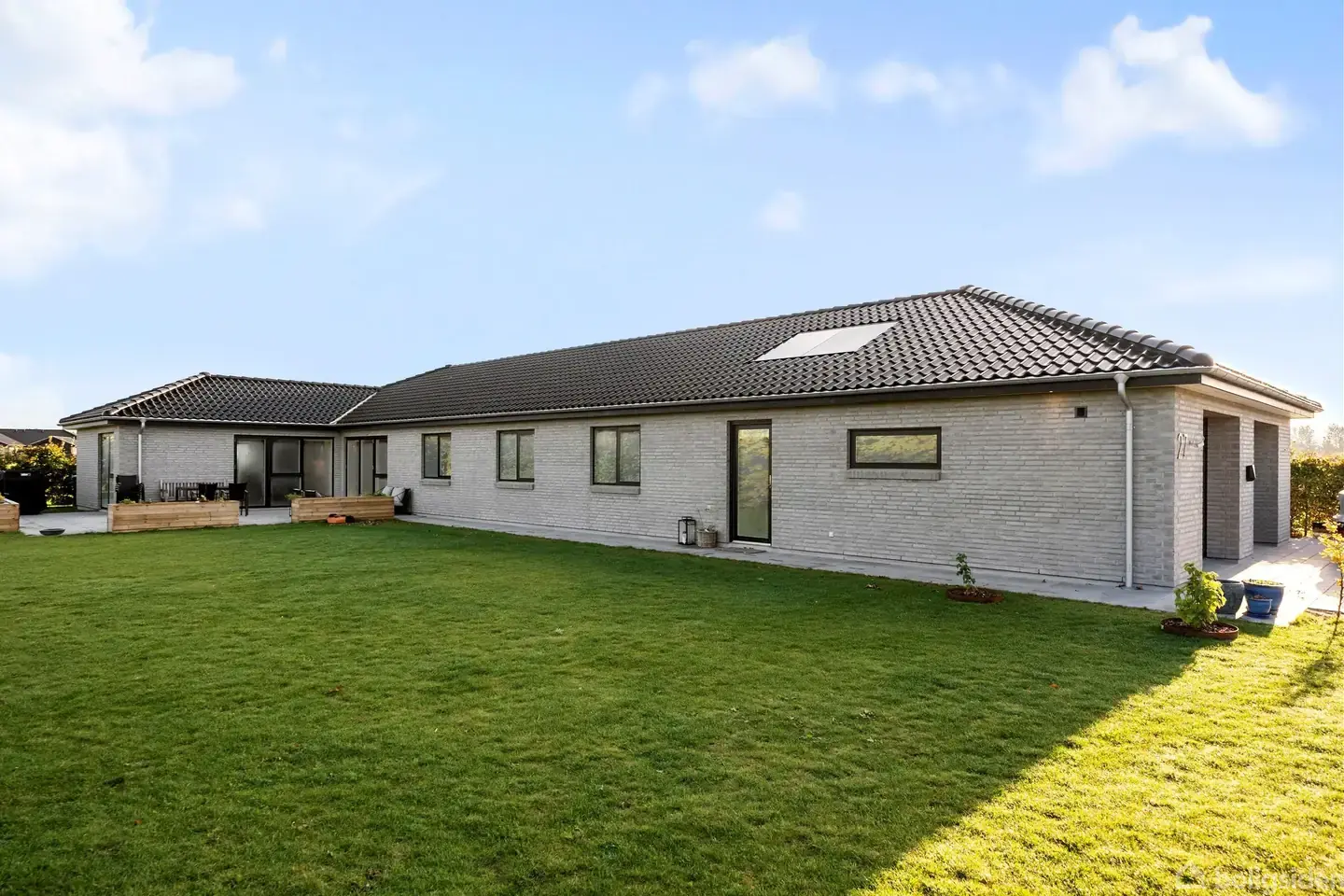 Åbent hus med tilmeldingskrav 8/2 - klik på billede - Velkommen til denne nyopførte og indflytningsklare villa fra 2024, et hjem, hvor hver detalje er skabt til at gøre hverdagen både smukkere og lettere. Ejendommen er opført i kvalitetsmaterialer og byder på gennemtænkte løsninger, der gør hverdagen både nem og indbydende. Fra den rummelige entré ledes I ind i en separat børneafdeling med hele fire store værelser med loft til kip og et badeværelse – perfekt til børnefamilien, der ønsker både plads og privatliv. For enden af afdelingen finder I et praktisk bryggers med direkte adgang til husets dobbelte garage, som er klargjort til gulvvarme. Husets naturlige samlingspunkt er det store køkken-alrum, hvor loft til kip og et velplaceret loftsvindue giver et fantastisk lysindfald og en luftig atmosfære. Køkkenet ligger i åben forbindelse med stuen, hvilket skaber et sammenhængende opholdsrum, hvor familien kan mødes på tværs af dagens aktiviteter. Køkken/alrummet er husets hjerte, og køkkenet fra HTH byder på høj kvalitet af hårde hvidevarer, et stilrent udseende kombineret med funktionalitet. Det ene højskab åbner til et indbygget viktualierummed ekstra opbevaringsplads. Forældreafdelingen er placeret separat og byder på et lyst soveværelse med tilhørende walk-in closet samt et lækkert badeværelse fra HTH med både brus og badekar – en oplagt privat oase. Hele huset har gennemgående gulvvarme. Beliggenheden i Langeskov Nord giver jer et roligt og familievenligt kvarter, hvor børn trygt kan færdes og lege i de grønne fællesarealer. Her møder I et stærkt naboskab og en fredelig atmosfære understøttet af stisystemer og rekreative områder. I har samtidig kort afstand til dagligdagens fornødenheder såsom indkøb, skole og børnehave, ligesom motorvej, landevej og offentlig transport er tæt på og sikrer nem adgang til resten af Fyn og omegn.