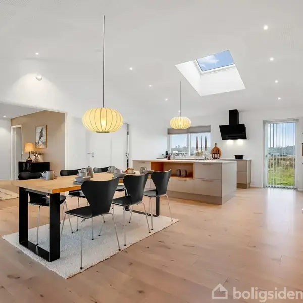 I Arnbjerg finder du et nyere attraktivt boligområde i Viborg med fokus på både natur- og bekvemmelighed. Ormådet er omgivet af grønne arealer og har samtidig kort afstand til indkøb samt gode busforbindelser.Udvendigt står facaden flot og klassisk i den mørke mursten Prima Messina med masser af spil i farverne. Tagets udhæng beskytter murværket og har indbyggede spots, der giver stemningsfuld udebelysning i efterårsmørket. Husets store garage ligger ud mod vejen, mens den overdækkede hovedindga