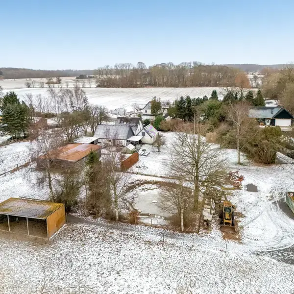 På Skovkildevej 22A i Vråby ved Hårlev finder du en sjældent hyggelig landejendom hvor roen naturen og nærværet går op i en højere enhed. Her er plads til både drømme heste og et liv i harmoni med omgivelserne kun få minutter fra byens faciliteter. Hovedhuset på 75 kvadratmeter byder på en charmerende og funktionel indretning med entré badeværelse køkken og en skøn udestue på 19 kvadratmeter hvor årstidernes skiften kan nydes i ly og læ. Her er et dejligt lysindfald og en stemning der inviterer til lange aftener med udsigt til haven og markerne. Fra baggangen er der trappe til førstesalen hvor to hyggelige værelser giver gode rammer for både familie gæster eller hjemmekontor. Ejendommen ligger på hele 3.2 hektar jord som folder sig smukt ud omkring huset. Grunden strækker sig helt ned i skoven og giver en helt særlig fornemmelse af privatliv og forbindelse til naturen. Her er anlagt ridebane og folde med god plads til hestene og en solid ridestald på 118 kvadratmeter med fem bokse samt saddelrum. Det er et oplagt sted for den hesteinteresserede eller for dig der ønsker masser af plads og muligheder omkring din bolig. Naturen omkring ejendommen er rig og varieret med åbne marker skov og et rigt dyreliv lige uden for døren. Samtidig er der kort afstand til Hårlev by som byder på indkøb skole institutioner sport og togforbindelser mod både Køge og Stevns. Her får du det bedste fra to verdener nemlig landlig idyl og byens bekvemmeligheder inden for rækkevidde. Skovkildevej 22A er ikke bare en ejendom men et hjem med sjæl hvor livet kan leves i et roligere tempo med plads til både hverdag og drømme. En landejendom der skal opleves.